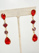 Add instant glam to your holiday wardrobe with our Red Holiday Gem Drop Earrings. Featuring cascading red and berry-toned gems in a gold setting, these earrings make any outfit shine!