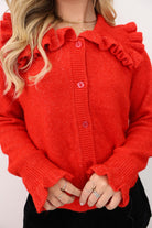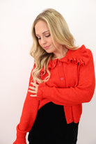 Ruffle Trim Cardigan - Red