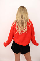 This red cardigan is such a sweet, feminine take on holiday dressing! The soft knit has a subtle shimmer woven throughout, and the ruffle detail along the neckline adds that chef’s kiss girly touch. Wear it buttoned as a standalone top or open over a tank — either way, it brings just enough sparkle without feeling over the top. Perfect for holiday dinners, school programs, or a cute and polished work-from-home outfit.