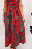 Red Plaid Smocked Midi Dress