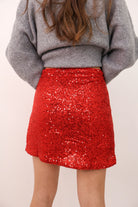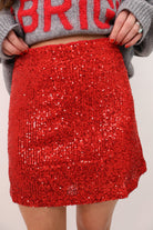 red sequin skirt, holiday sequin mini, Christmas party outfit, red sparkle skirt, women’s holiday skirt