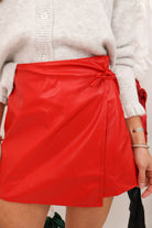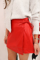 Red Faux-Leather Wrap Skort