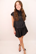 Shimmer Balloon Top + Skirt Set - Black