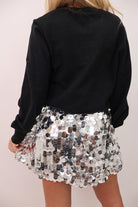 silver sequin skirt, holiday sequin skirt, New Year’s skirt, sequin mini skirt, Christmas party outfit