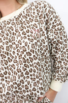 Meet the playful, cozy set you’ll reach for all season long. This leopard lounge set brings a fun pop to your everyday look, complete with a tiny embroidered pink bow on the chest — the sweetest little detail that sets it apart. The top fits relaxed with soft banded cuffs, while the matching pants feature an elastic waistband, side pockets, and a comfy full-length silhouette. It's the perfect mix of cute, comfy, and a little bit extra.