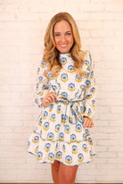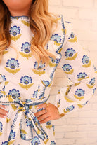 This blue floral mini dress is sweet, feminine, and flattering in all the right ways! Featuring a soft floral print, long sleeves, and a ruffled hem, this dress is finished with a contrast trim and an adjustable tie waist that cinches you in beautifully. The lightweight fabric flows effortlessly, making it perfect for spring events and warm-weather days.