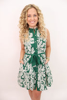 Chic, detailed, and effortlessly wearable — this embroidered midi dress is everything we love about fall style. Featuring delicate allover contrasting embroidery, this classic sleeveless dress is the perfect choice for upcoming weddings, showers, and more. The flowy silhouette is anchored by an adjustable waist tie making it an easy fit. A touch of pearl beading adds an elevated finish that makes this one extra special!