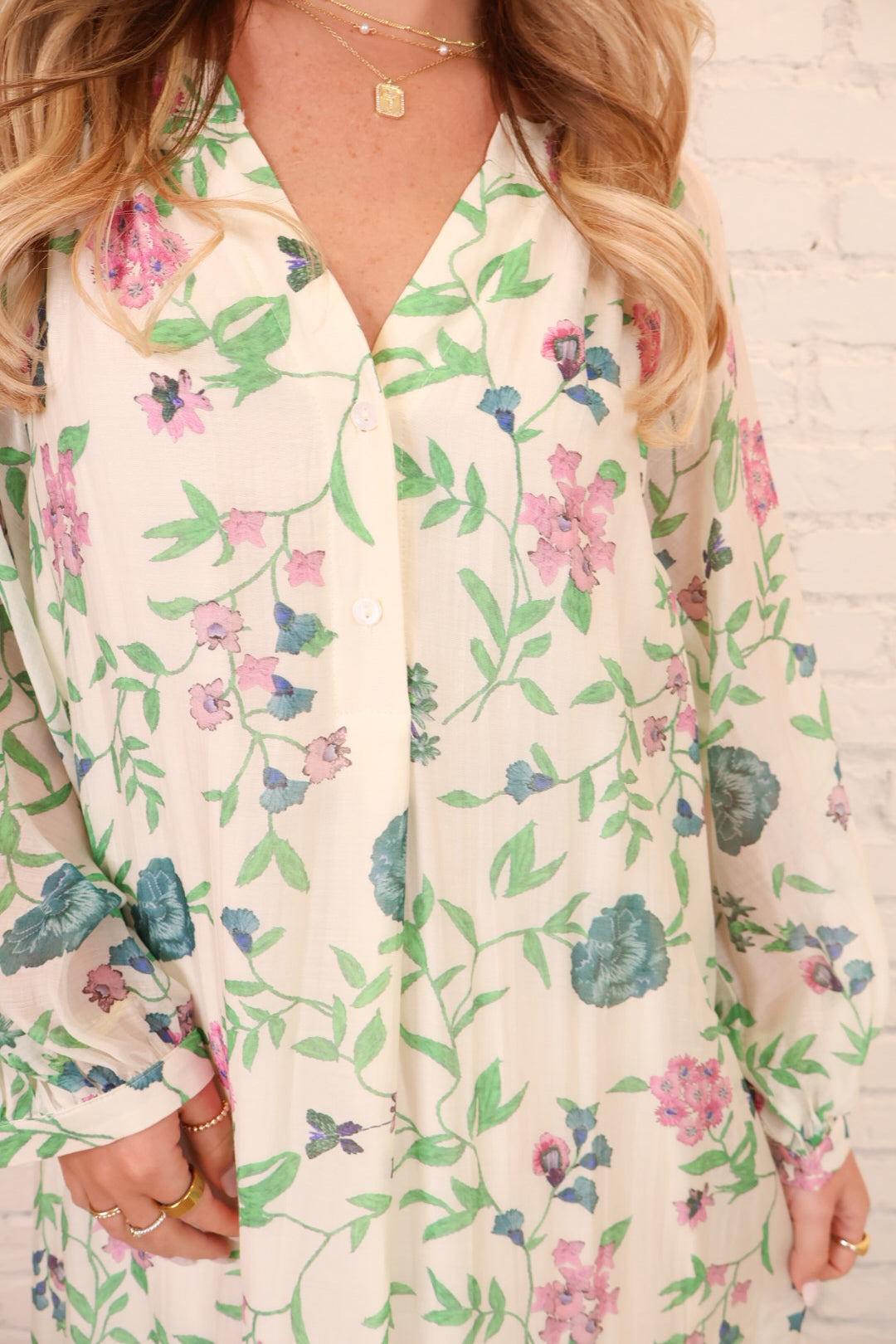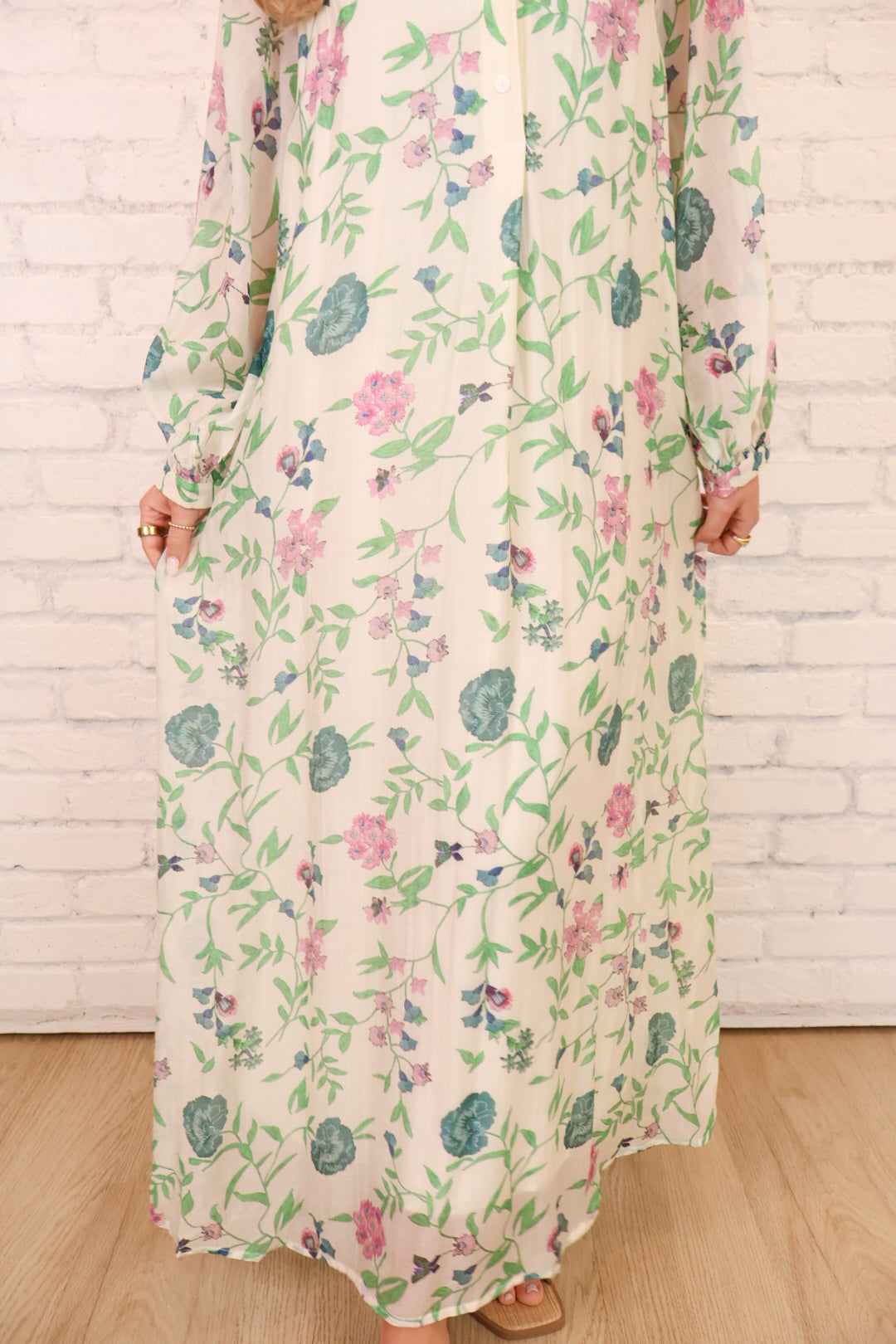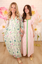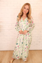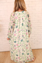This green and pink floral maxi dress is soft, romantic, and easy to wear! Featuring a flattering v-neckline, long sleeves, and a flowy maxi silhouette, it’s perfect for everything from brunch and church to showers and special daytime events.