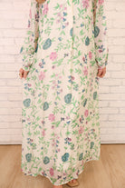 Green & Pink Floral Chiffon Maxi Dress
