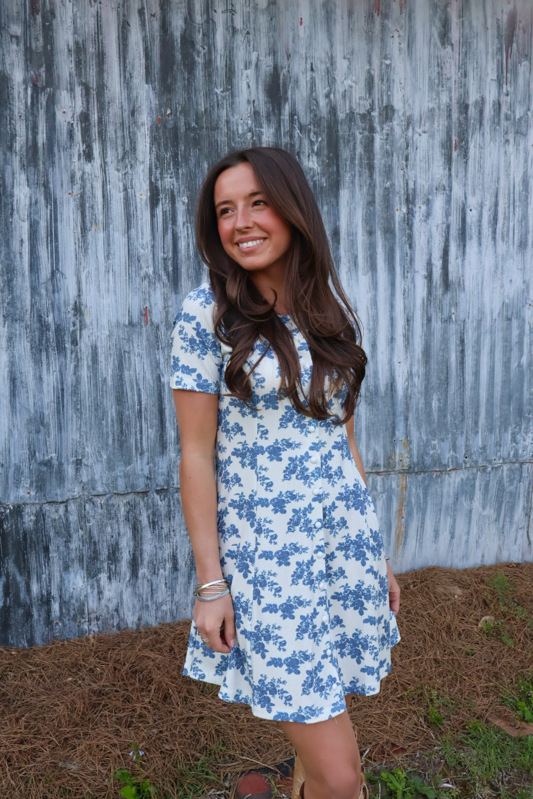This dress is just easy in the best way! The soft ribbed blue floral print, flattering fit, and button front detail make it one of those pieces you can throw on and instantly feel put together!