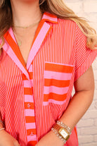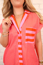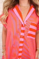 Mixed Stripe Button Down Shirt Dress - Pink/Orange