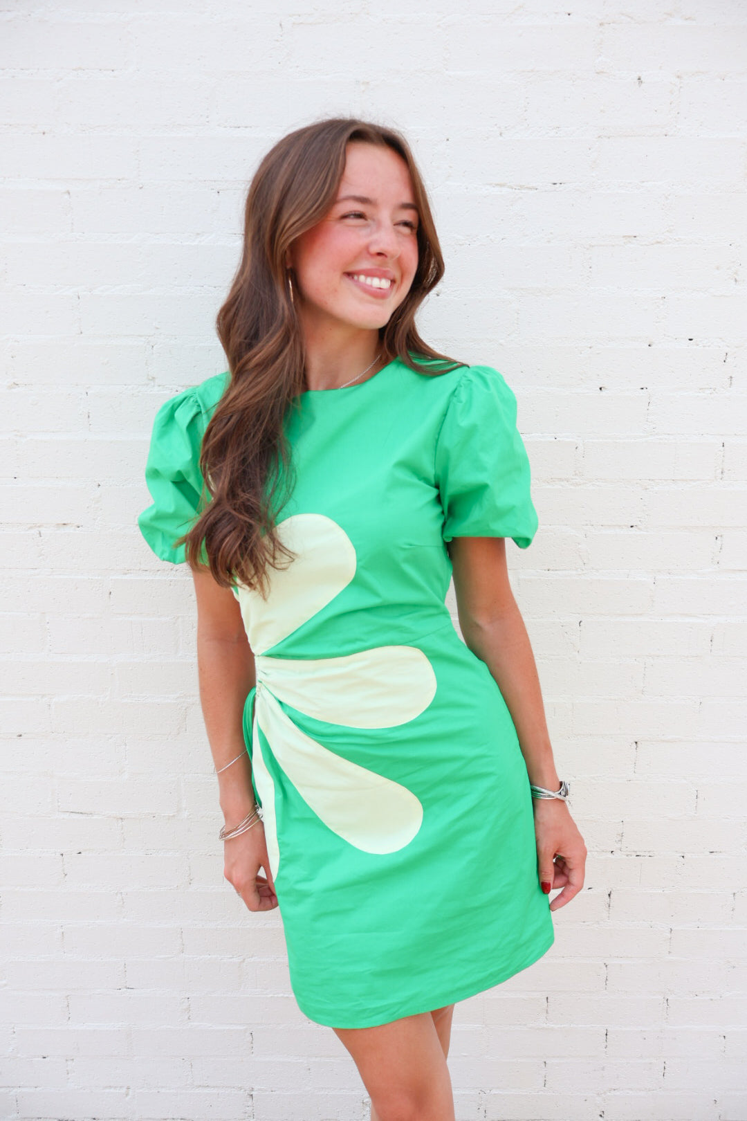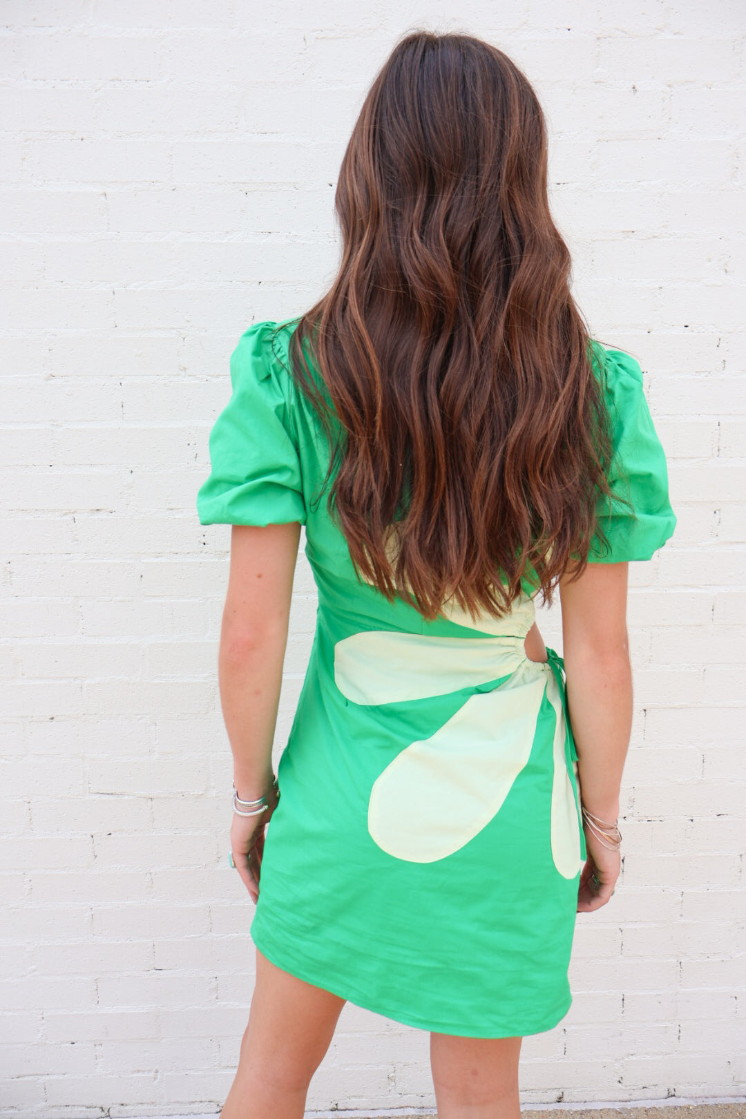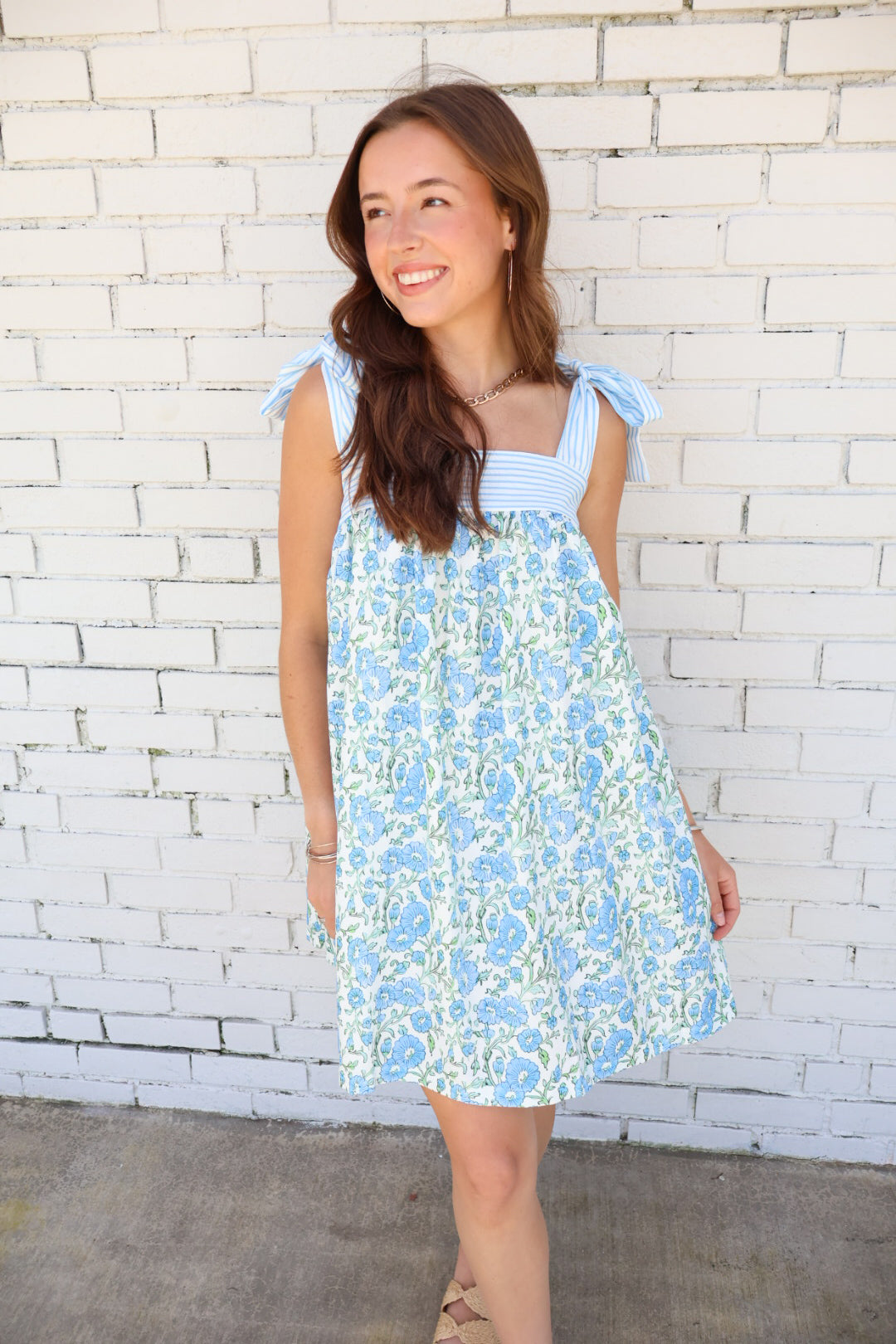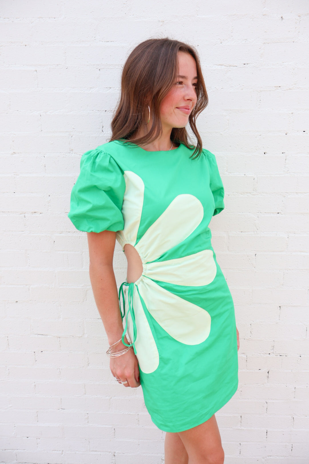 Green & Pink Floral Stripe Shoulder Tie Dress