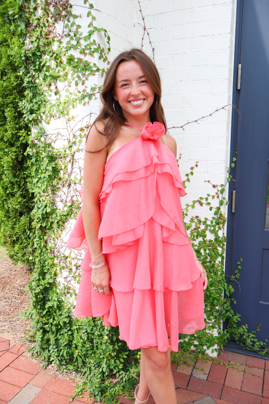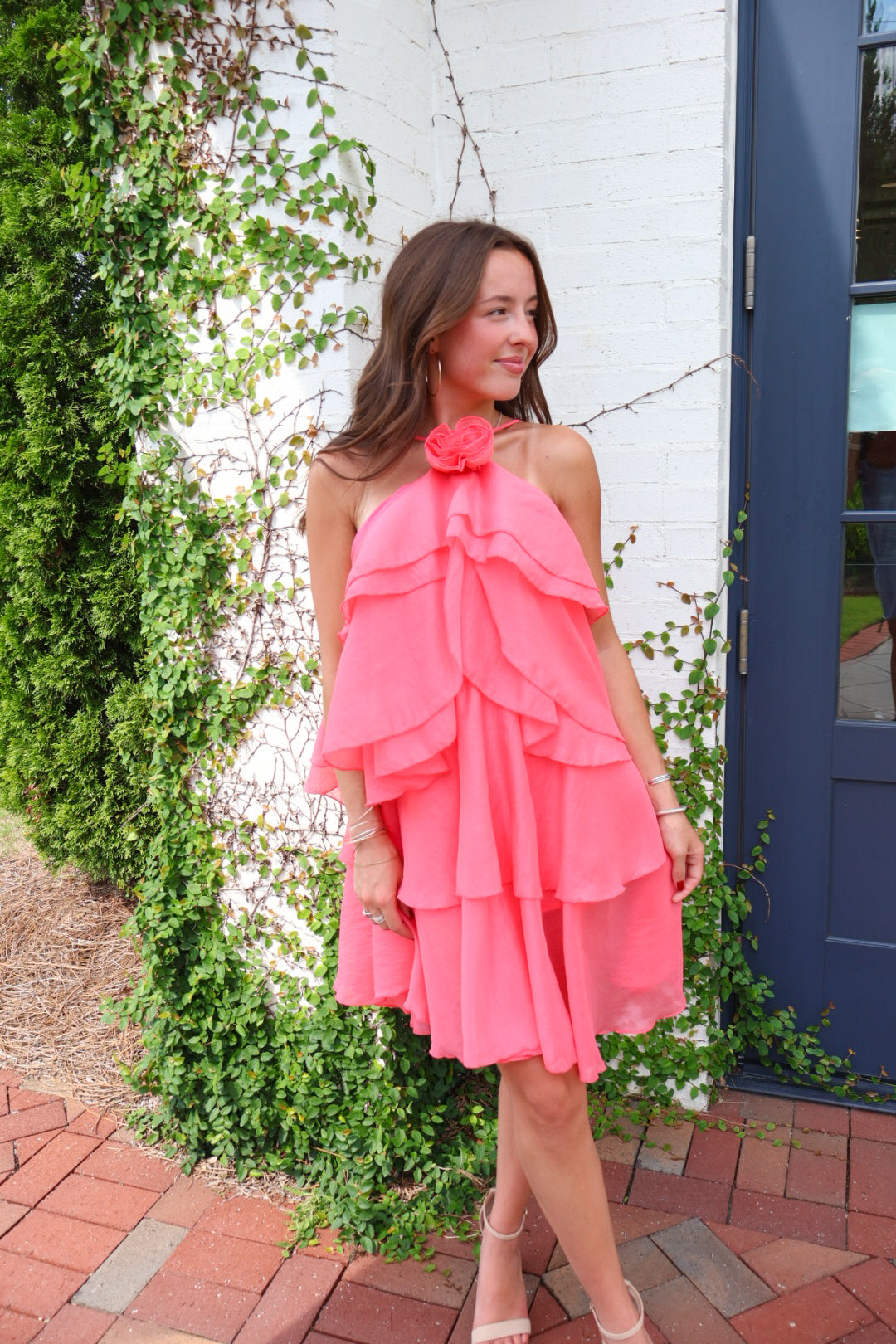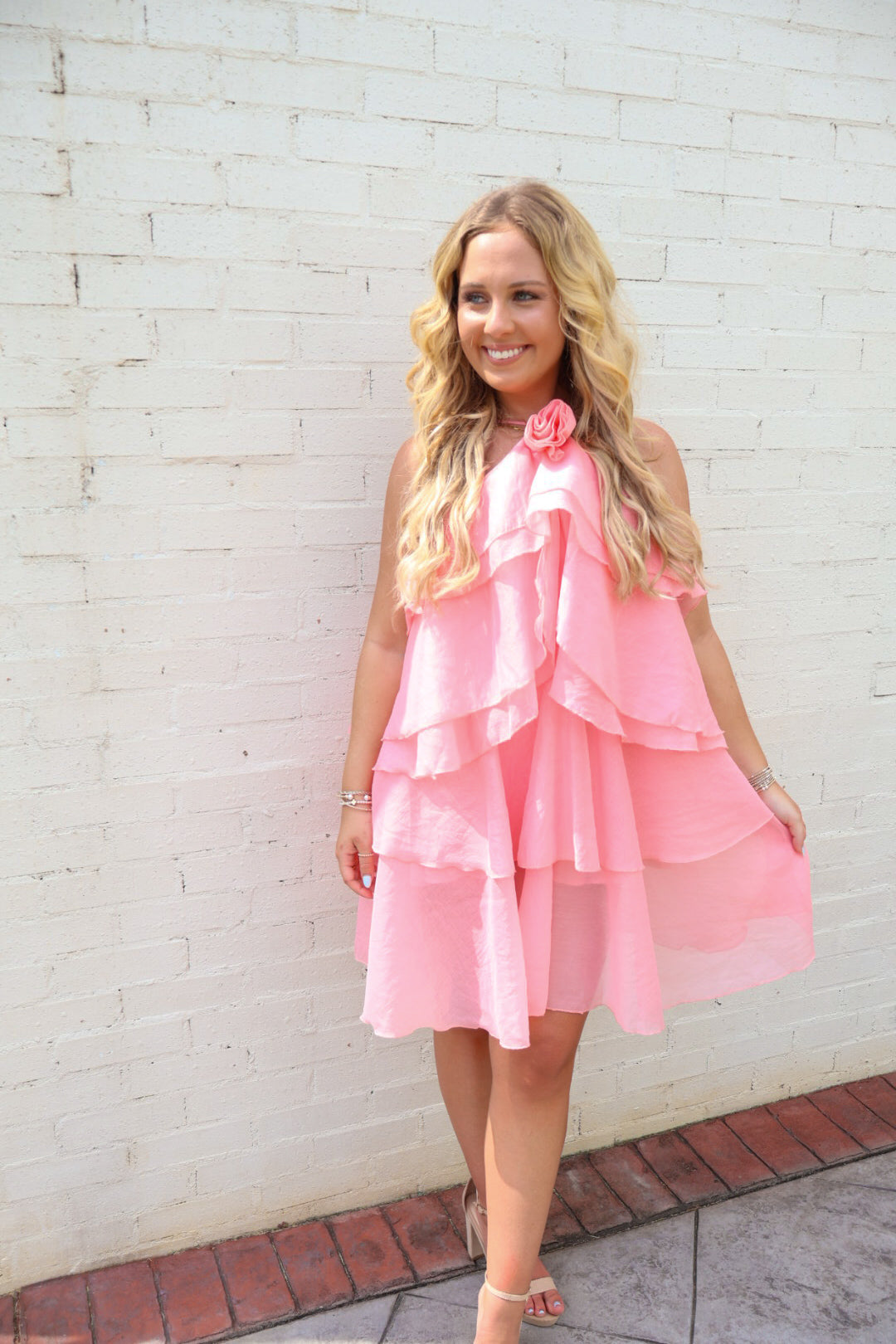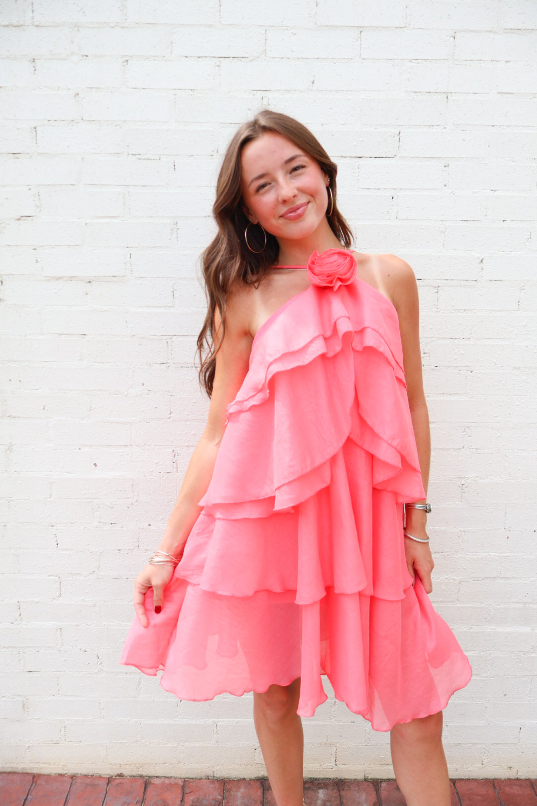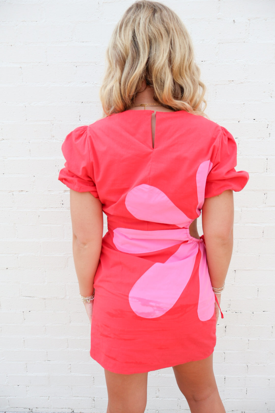 Green & Pink Floral Stripe Shoulder Tie Dress