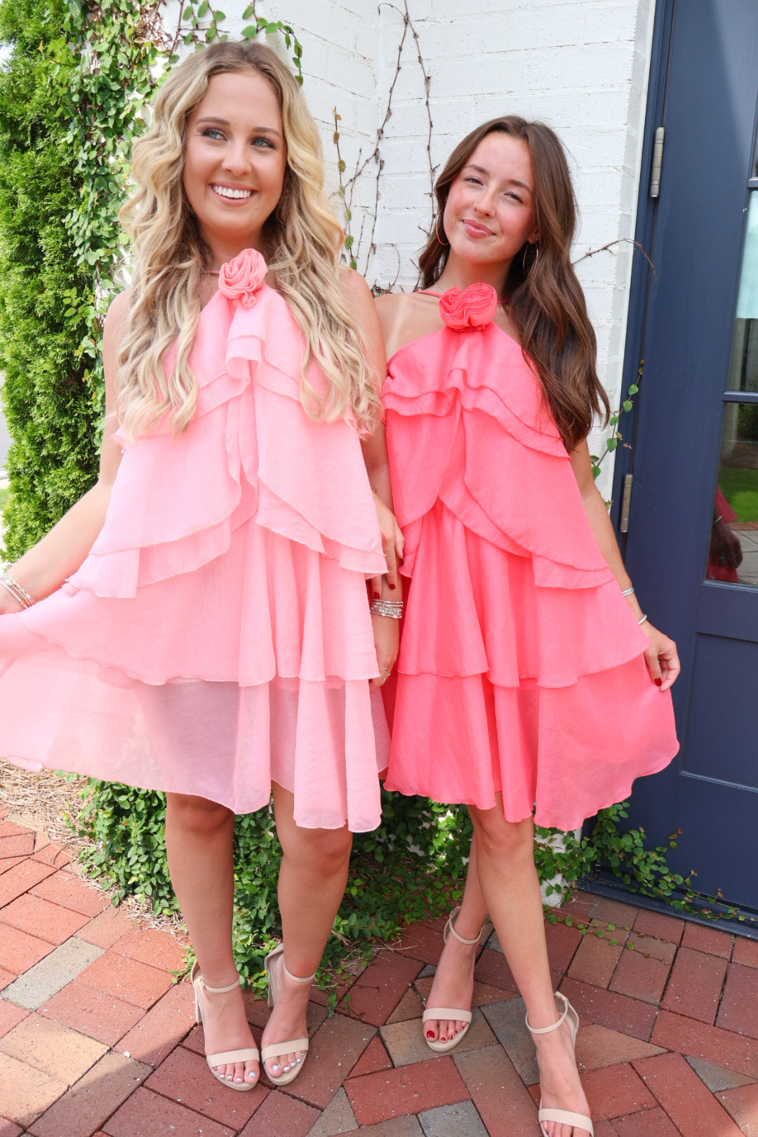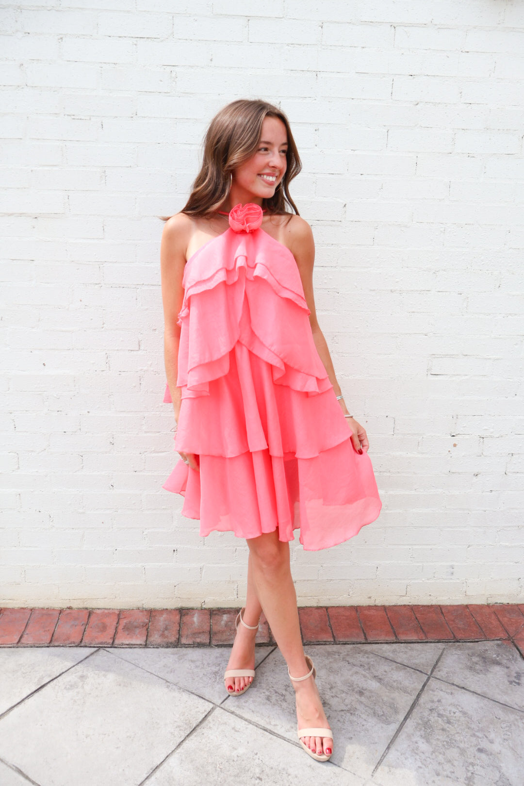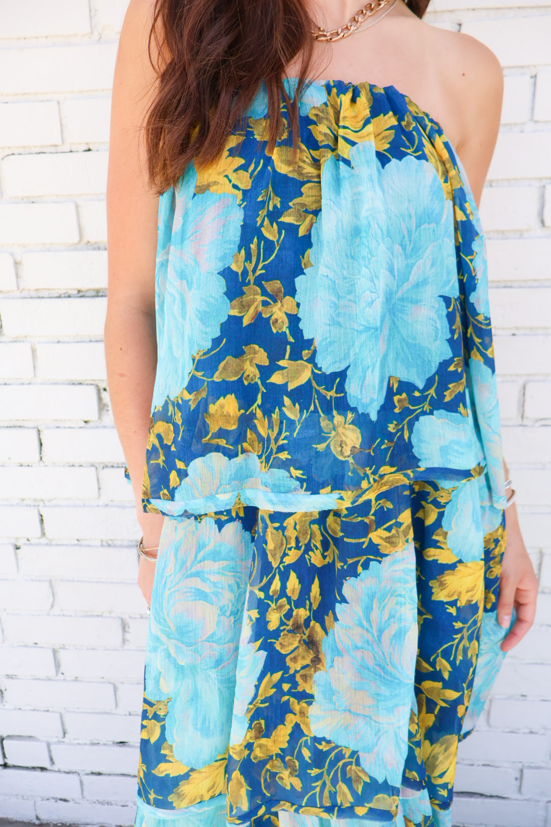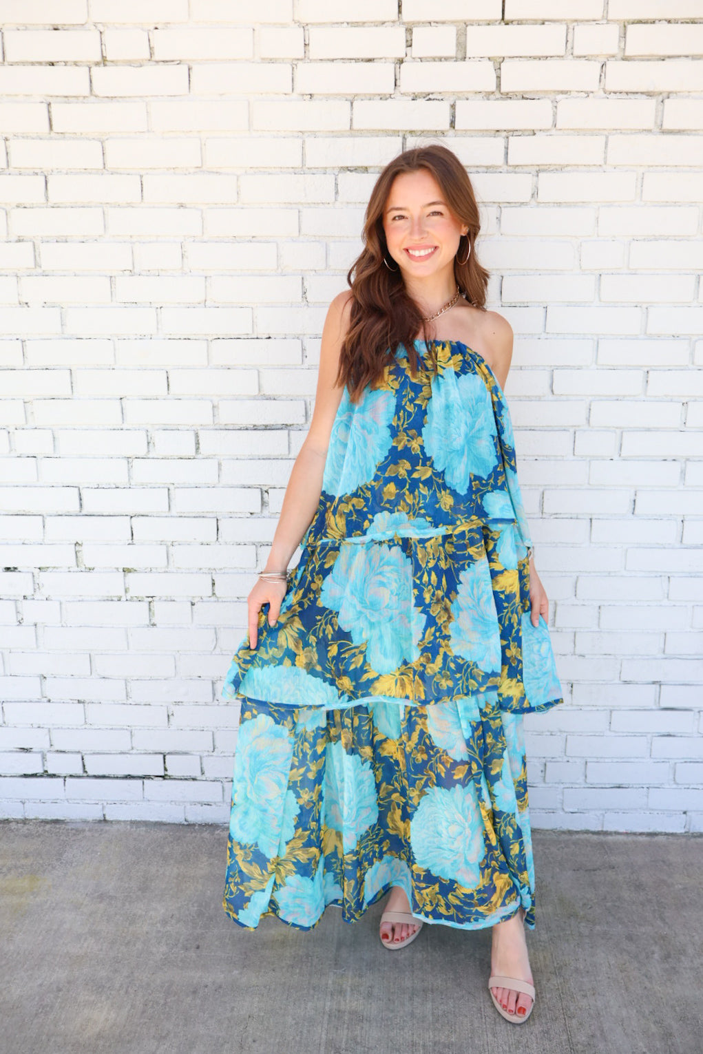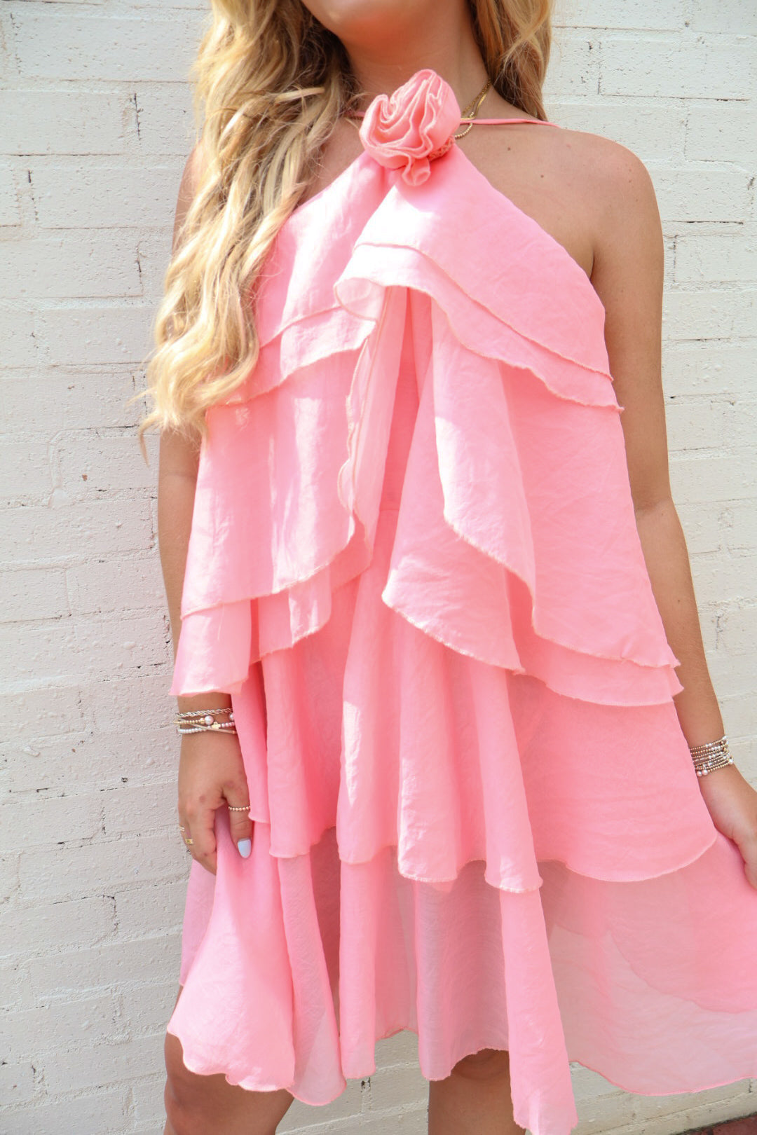 Green & Pink Floral Stripe Shoulder Tie Dress