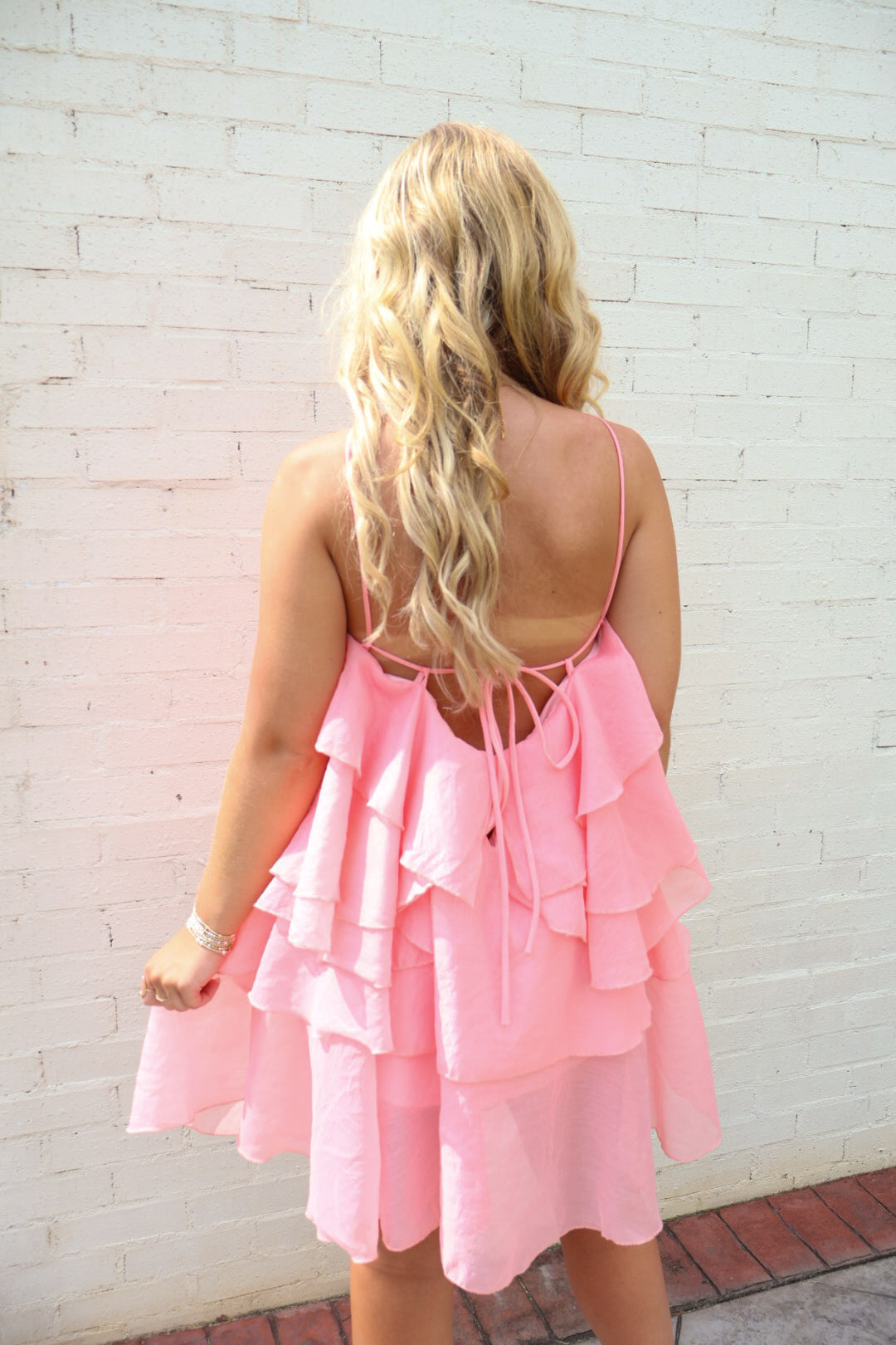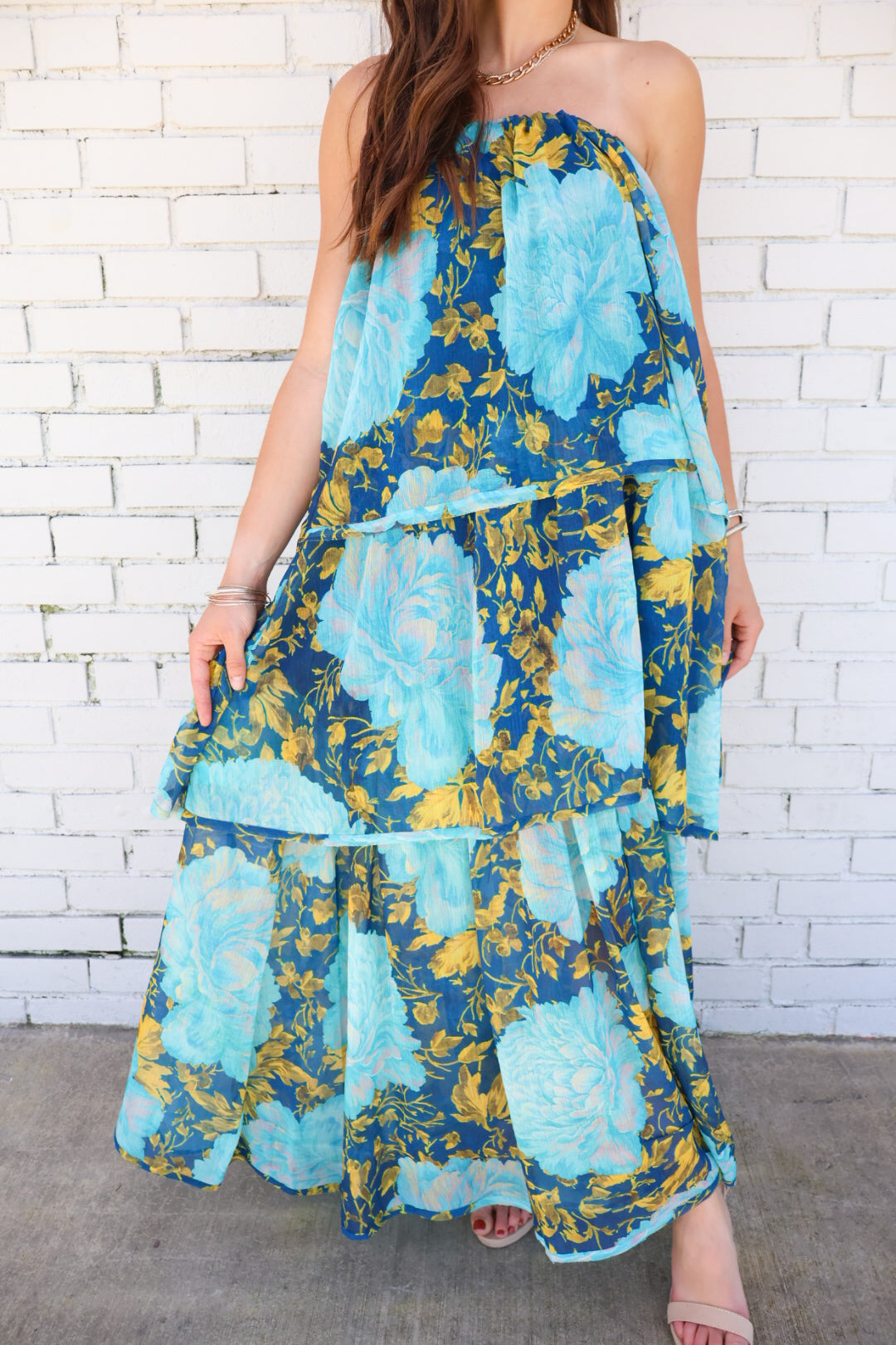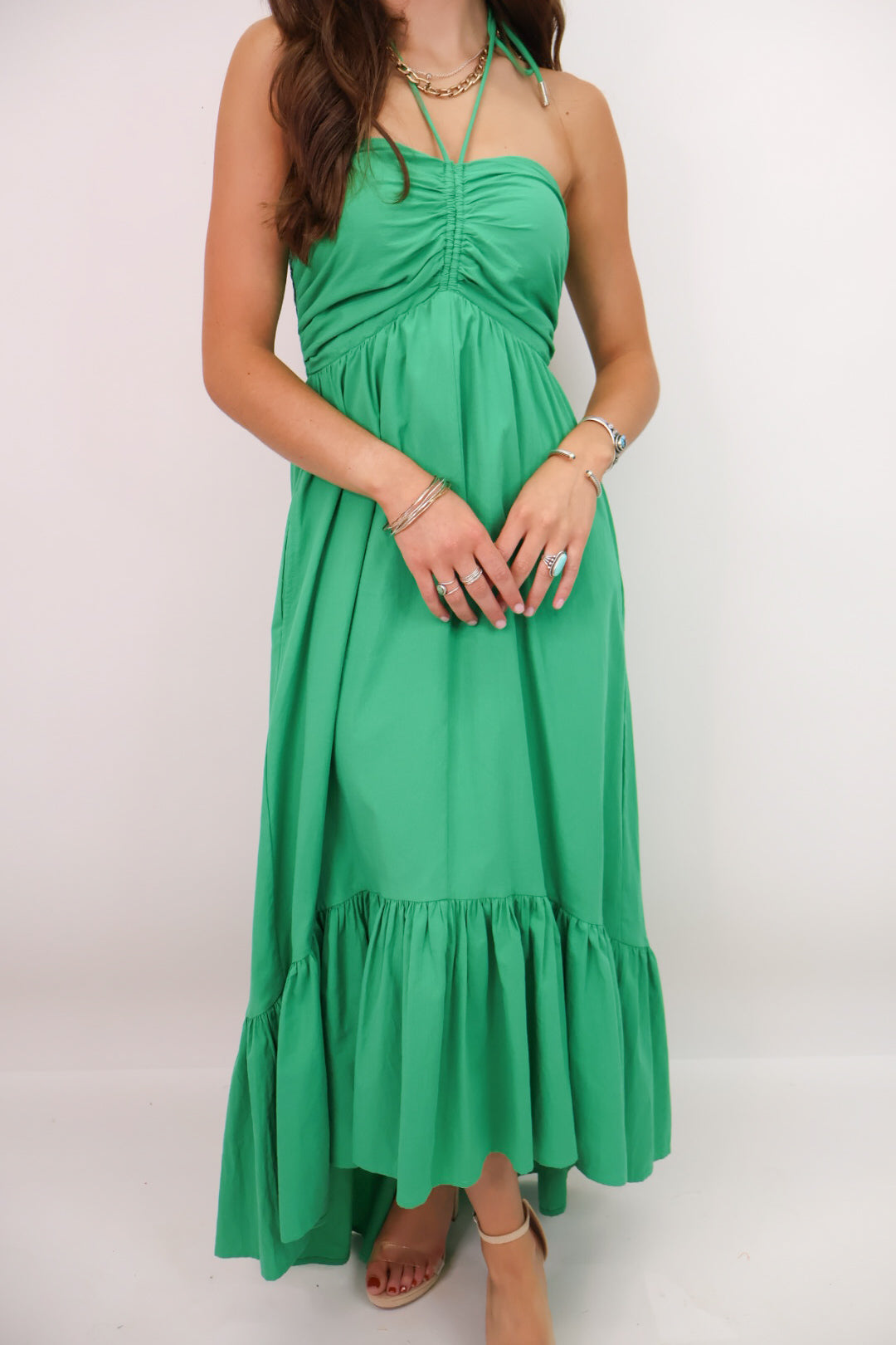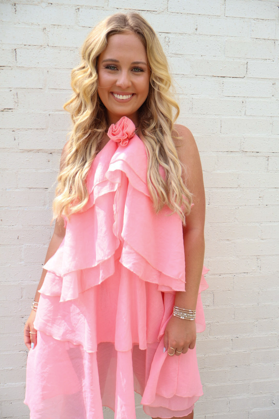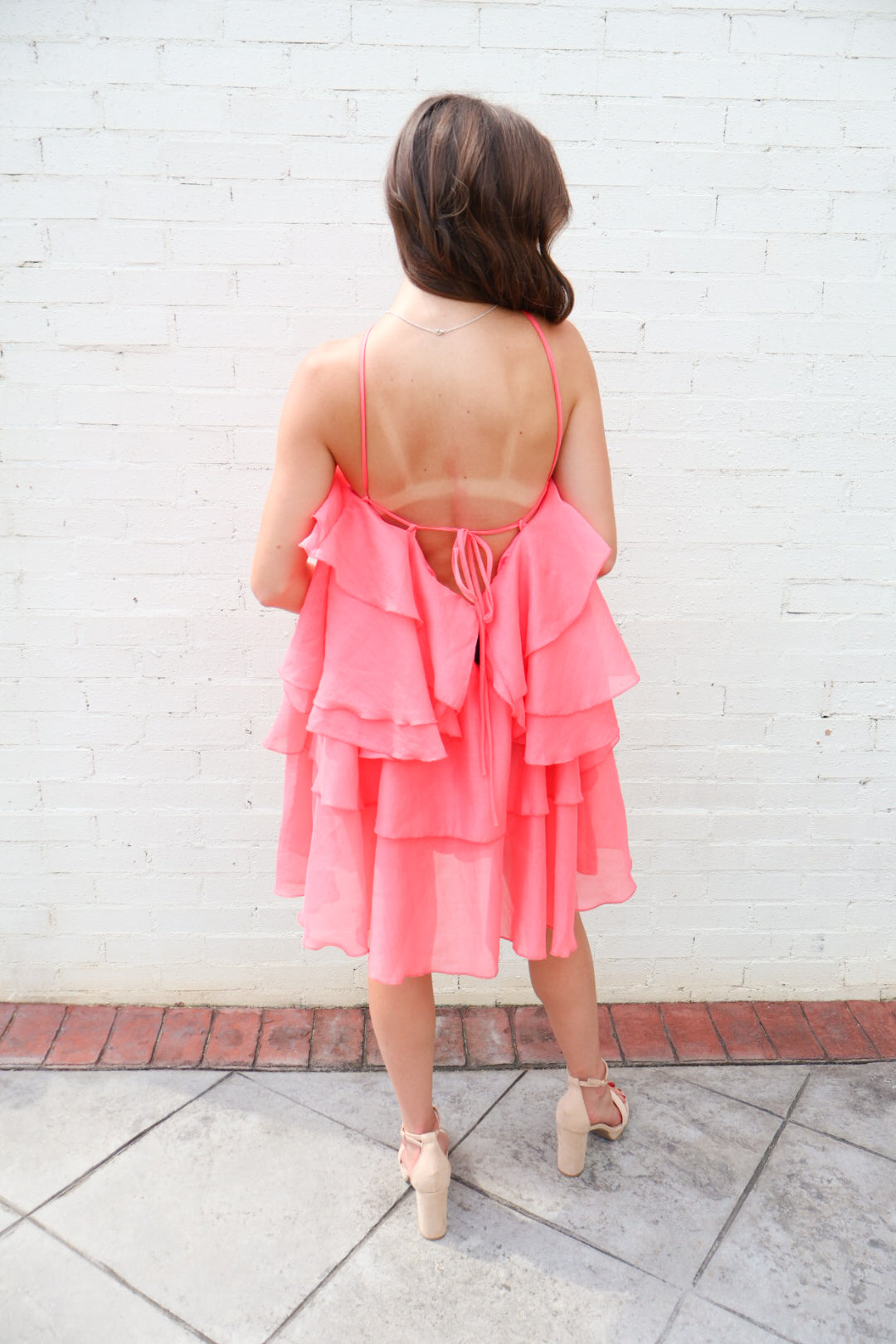 Green & Pink Floral Stripe Shoulder Tie Dress