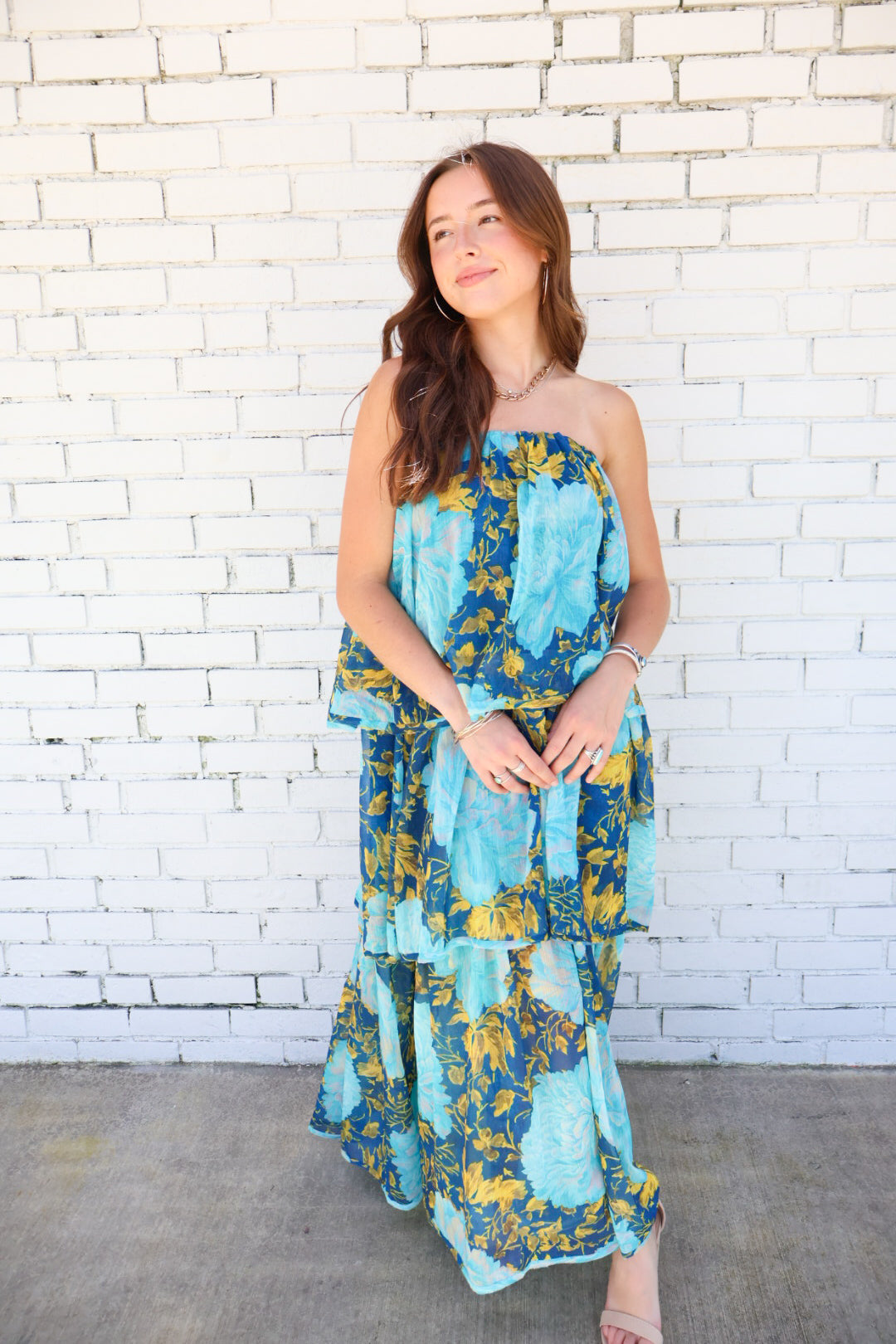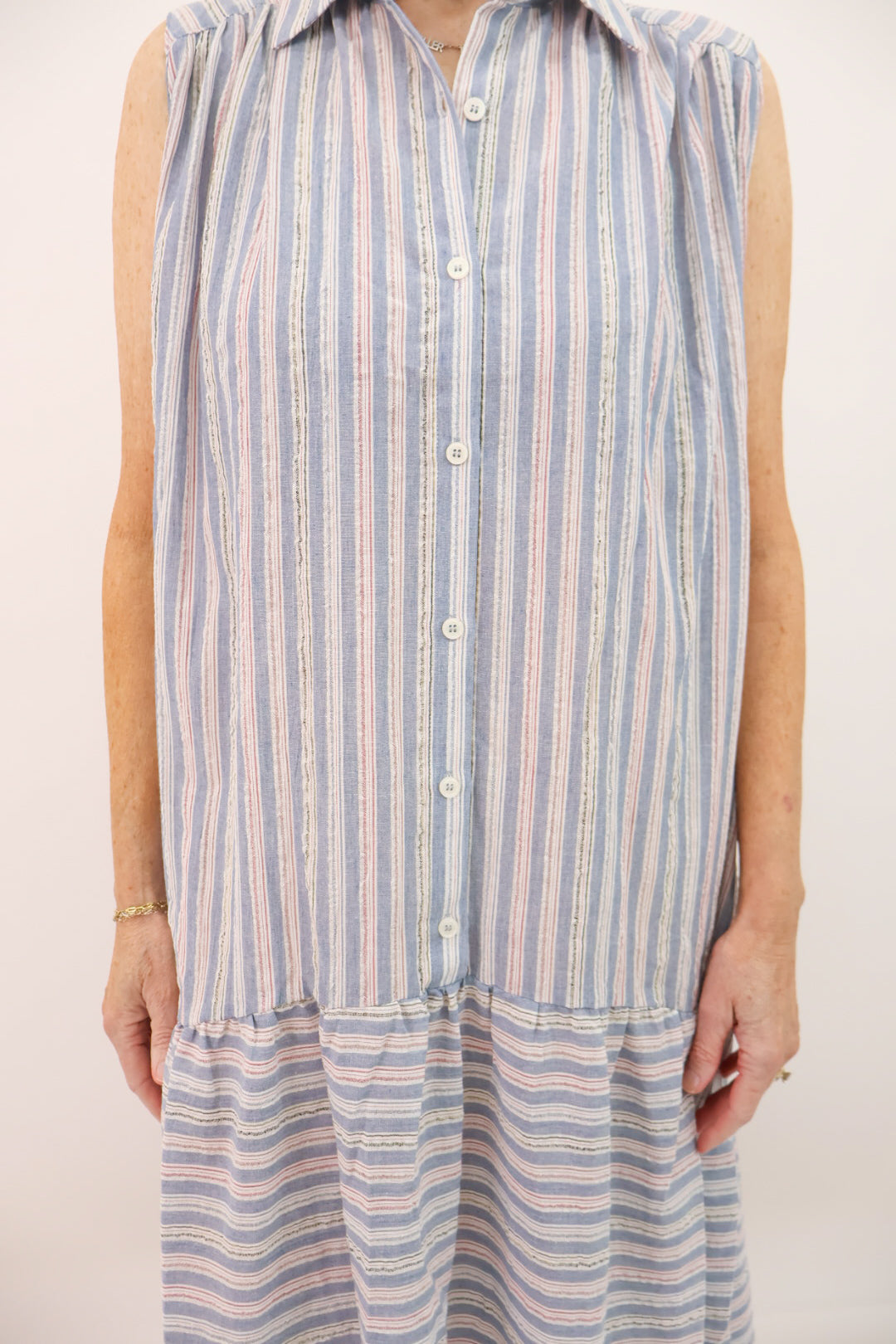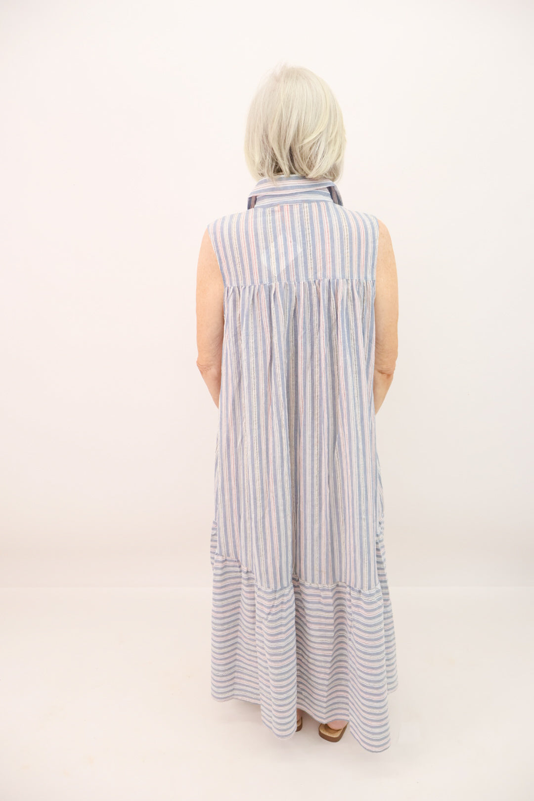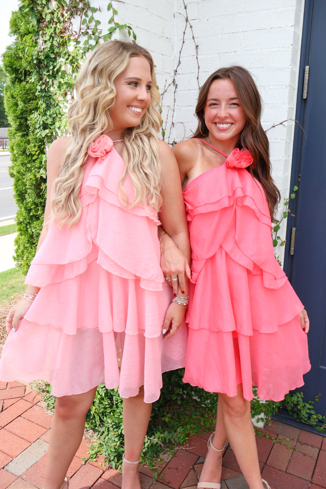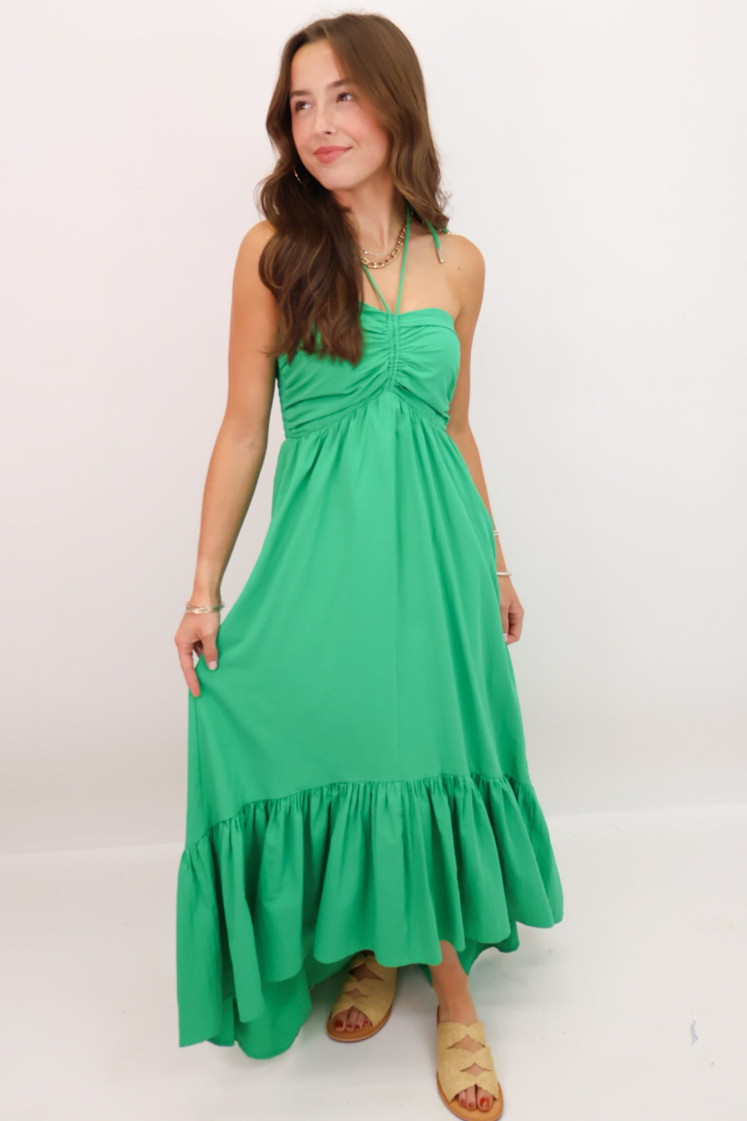 Green & Pink Floral Stripe Shoulder Tie Dress