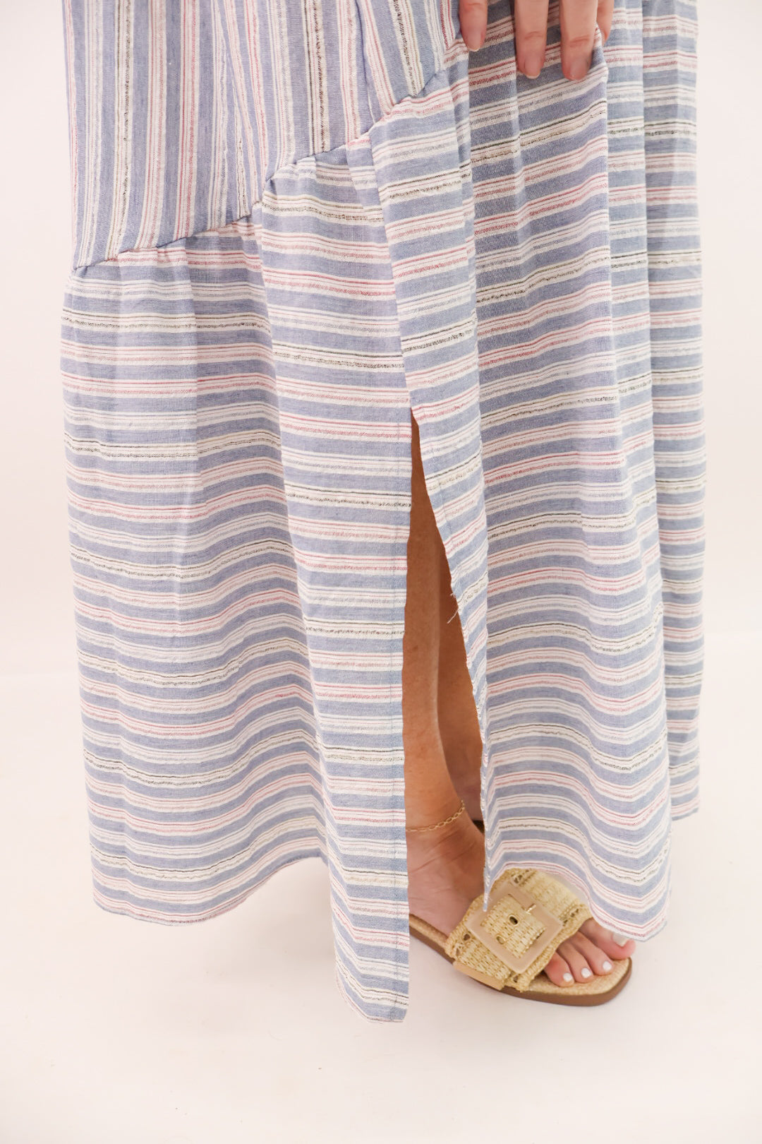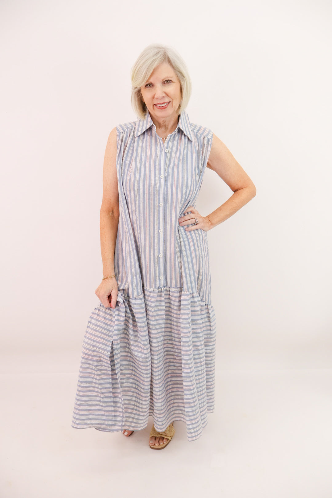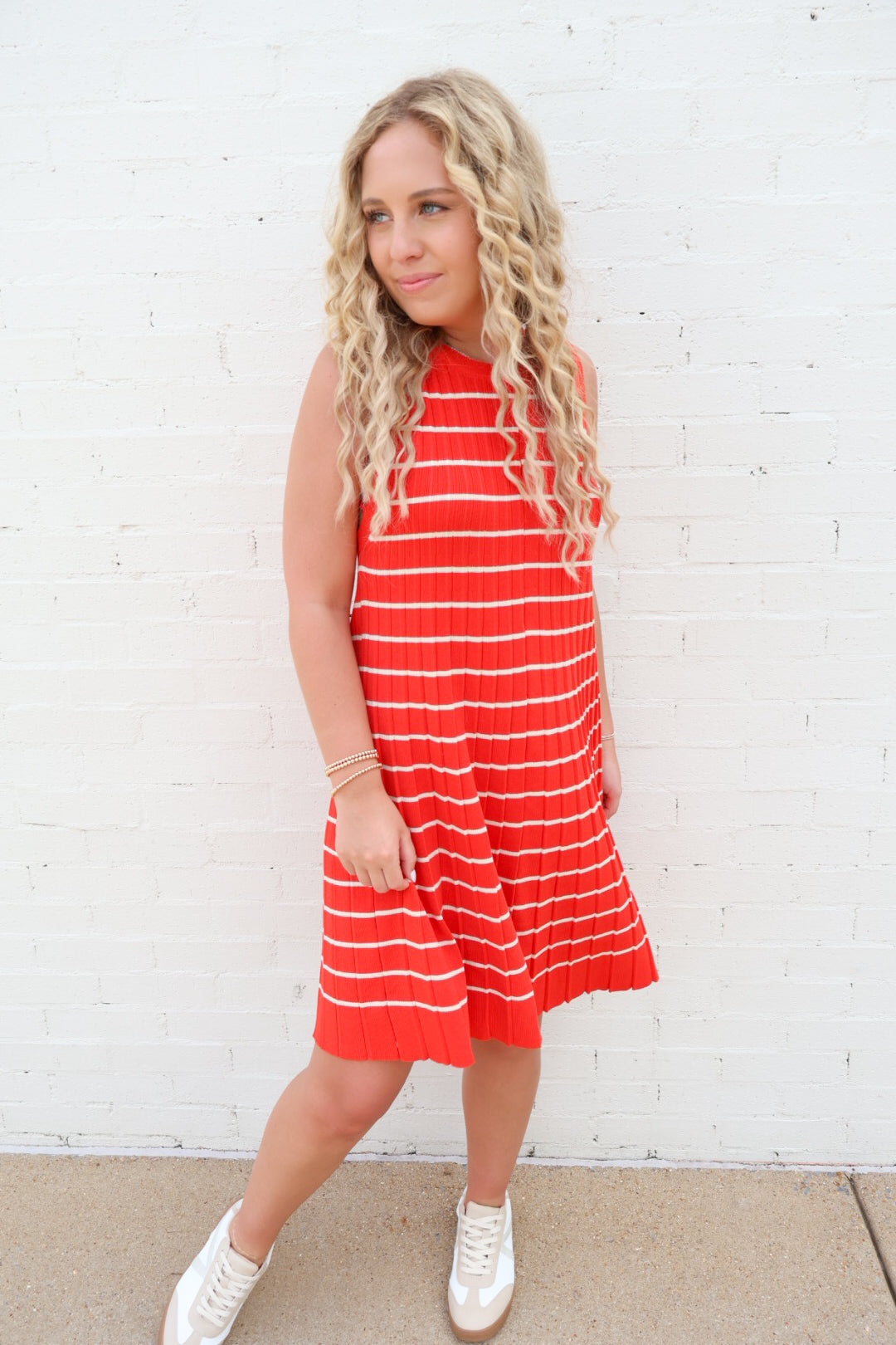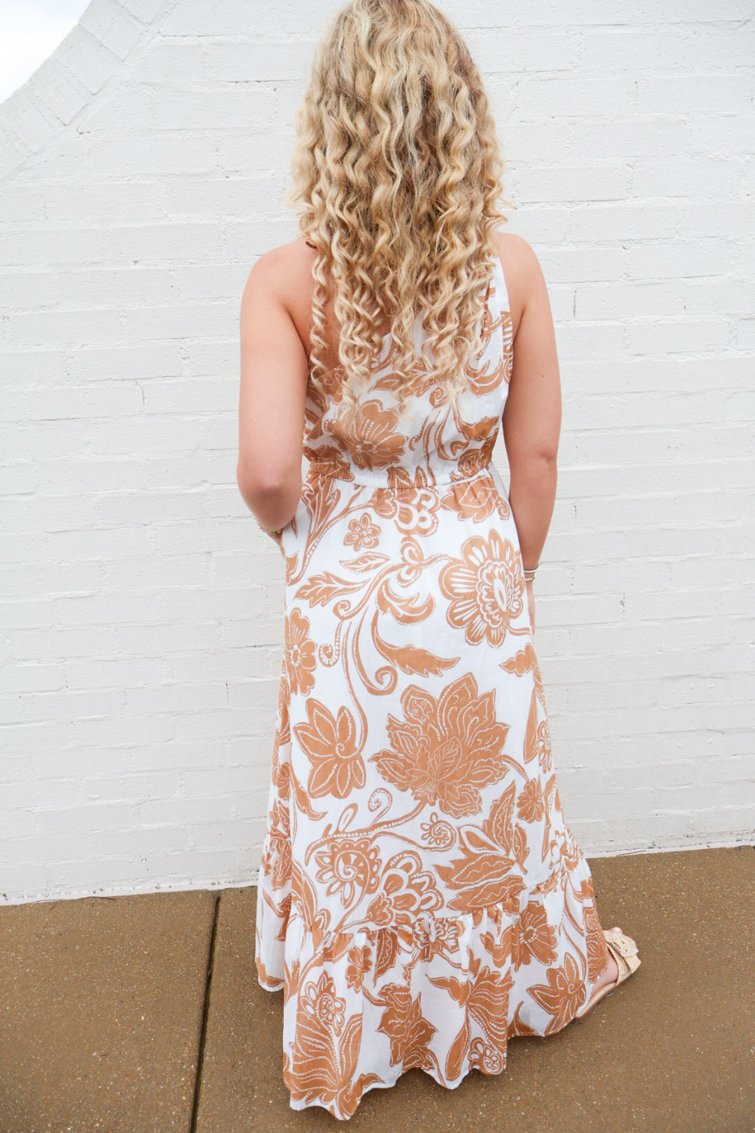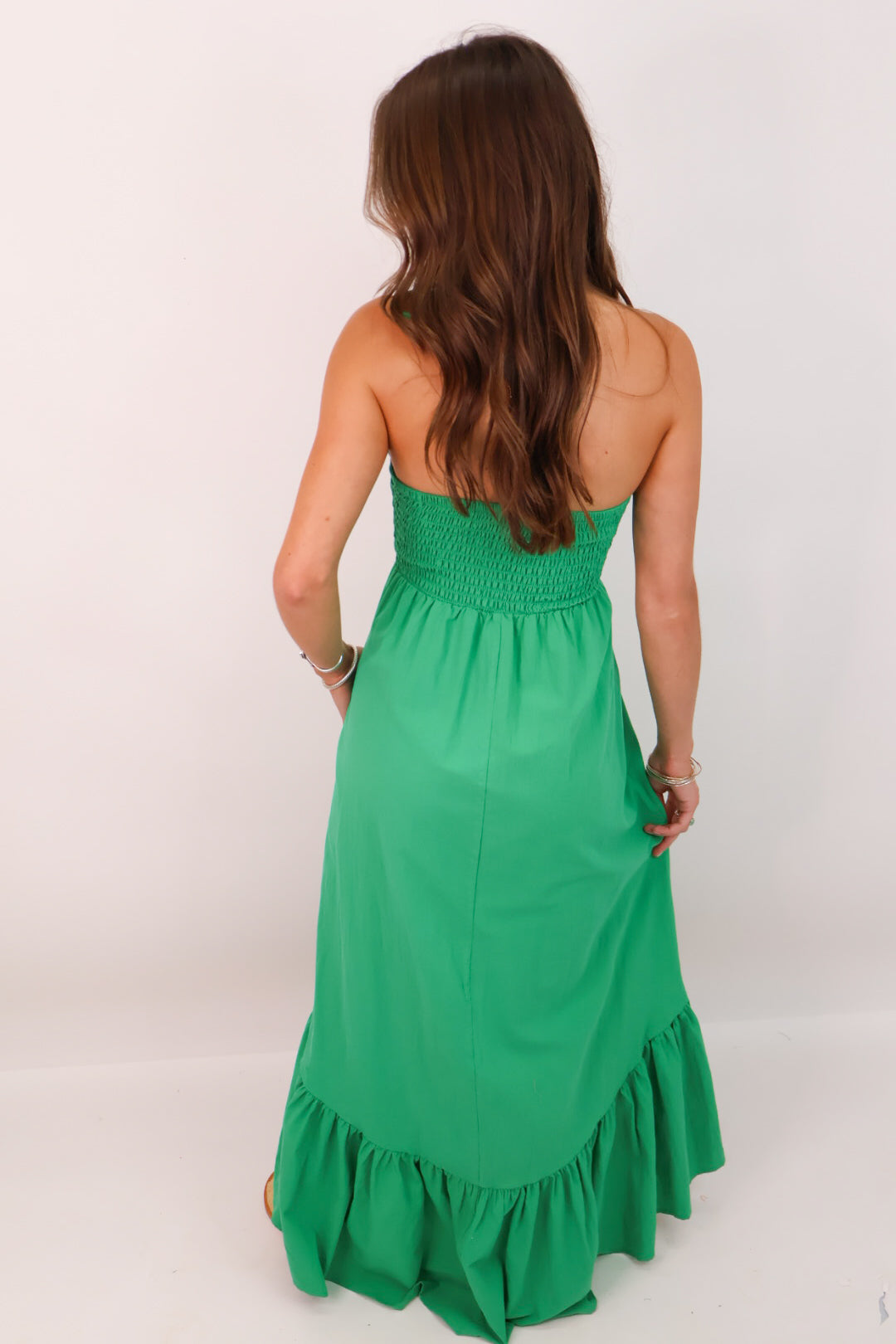 Green & Pink Floral Stripe Shoulder Tie Dress