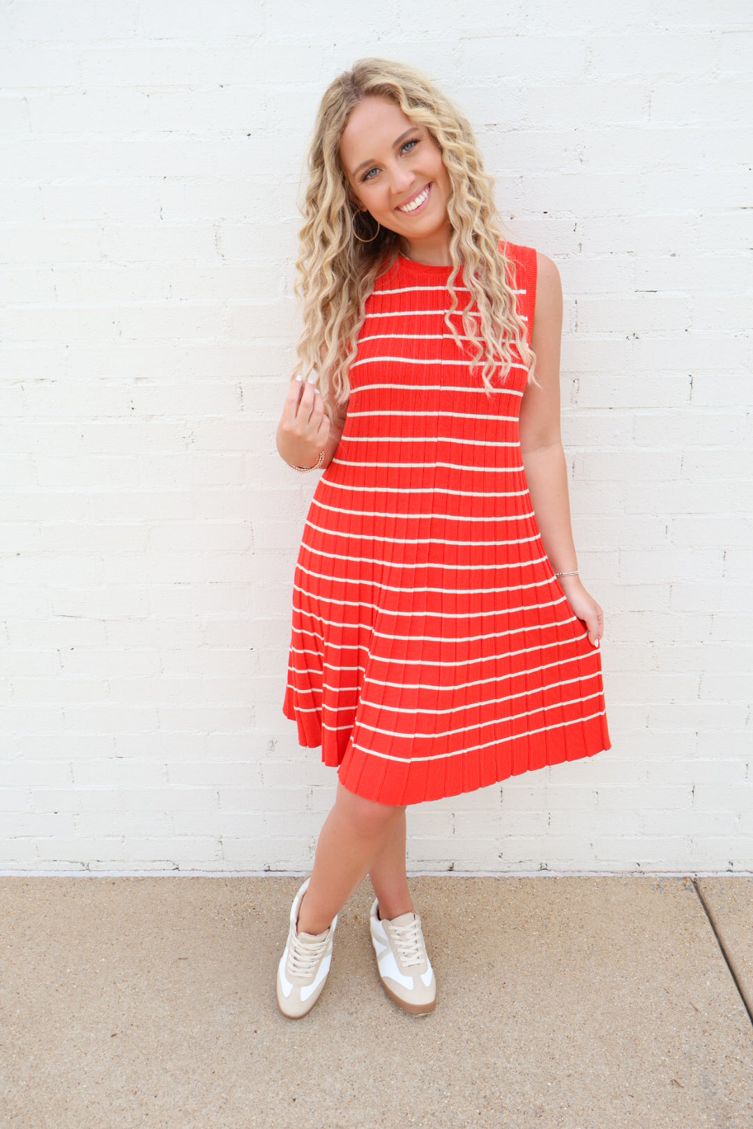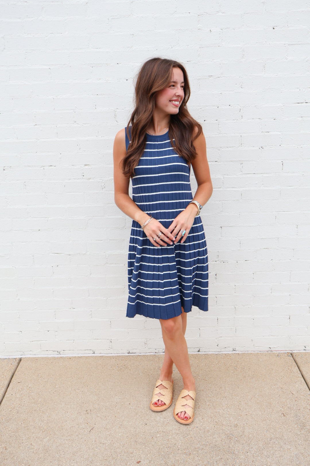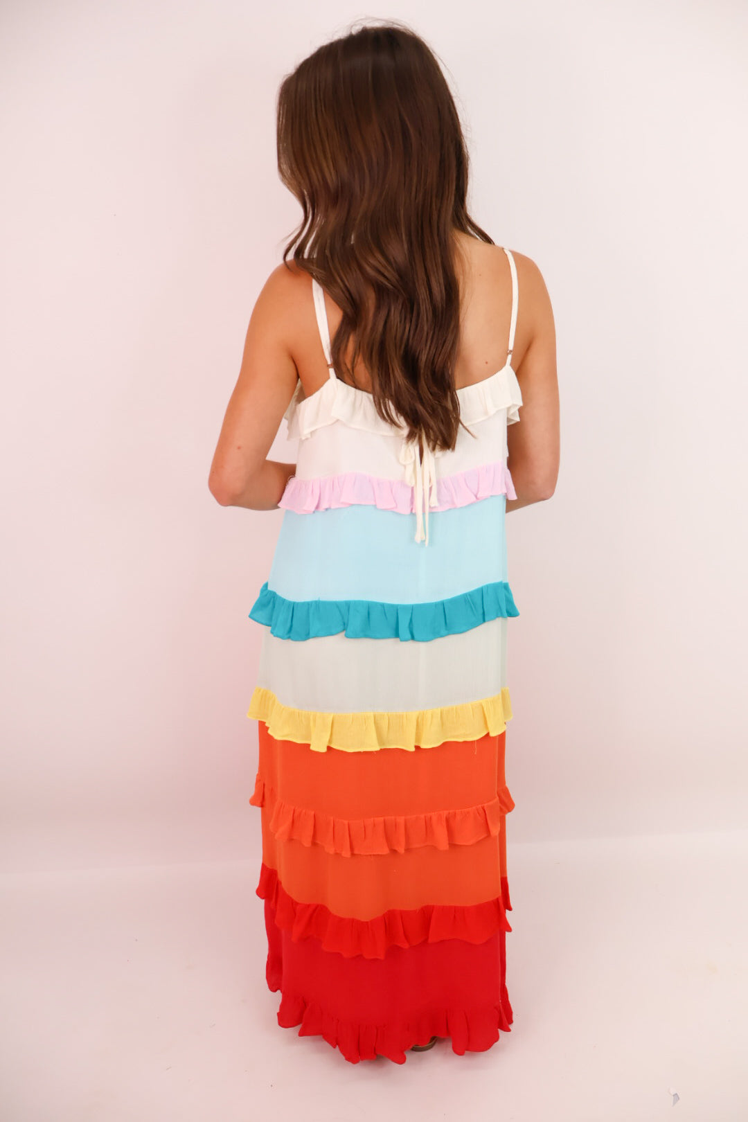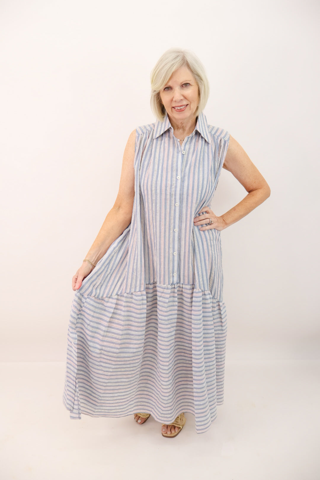 Green & Pink Floral Stripe Shoulder Tie Dress
