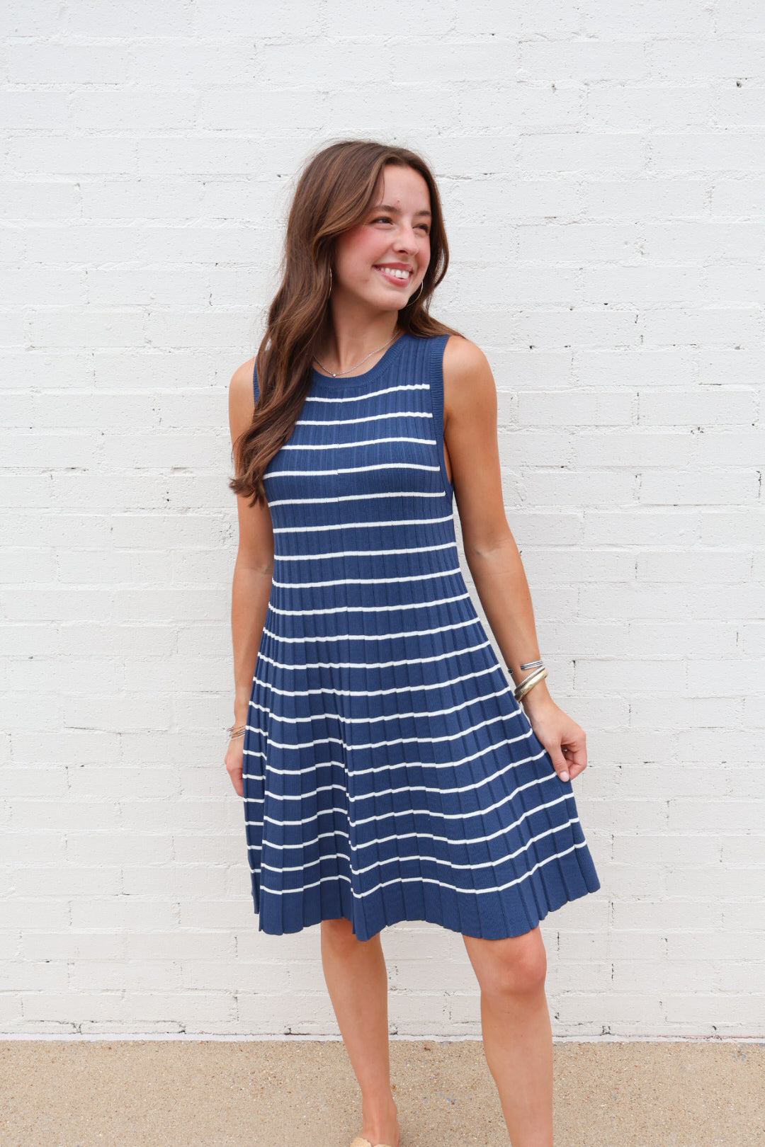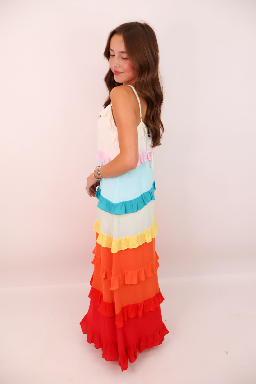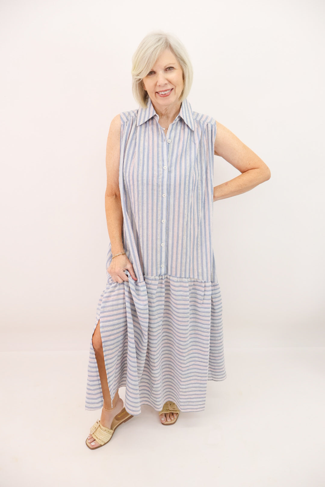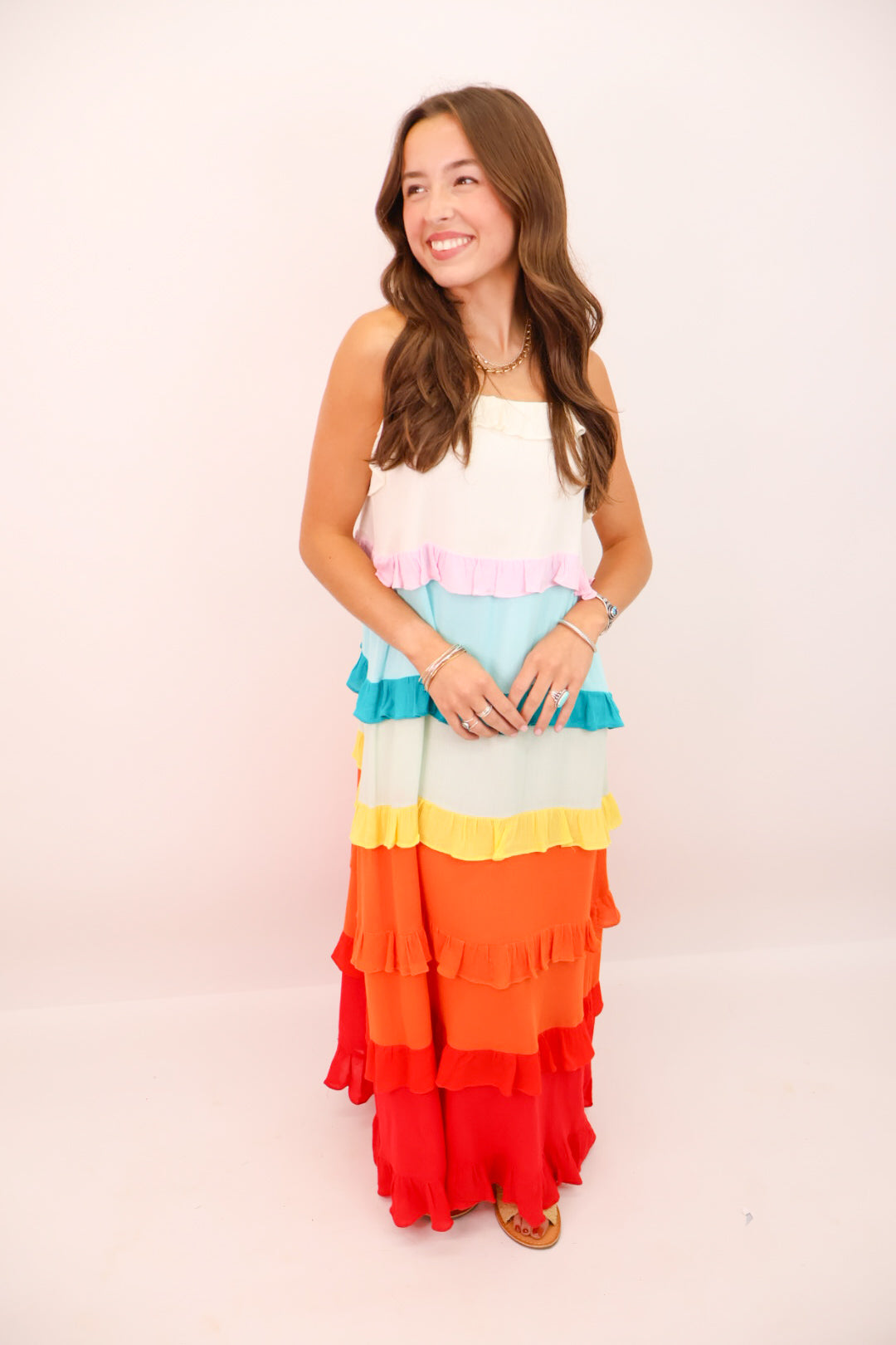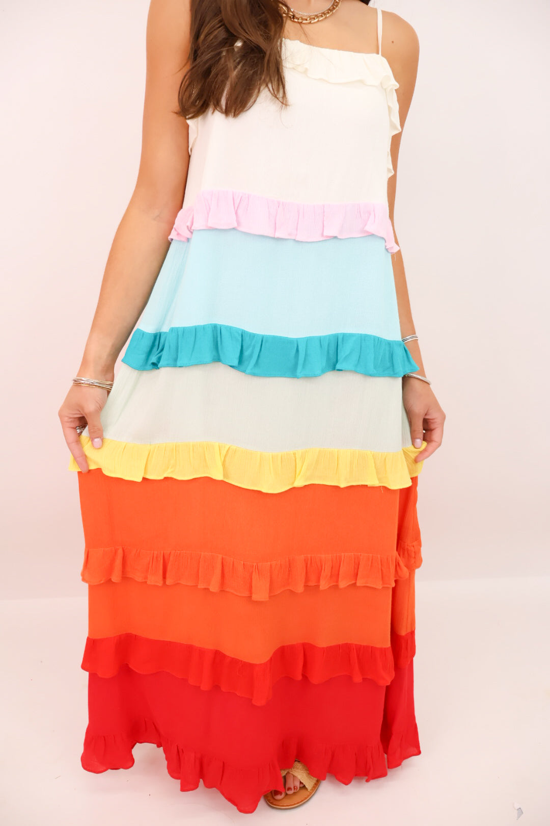 Green & Pink Floral Stripe Shoulder Tie Dress