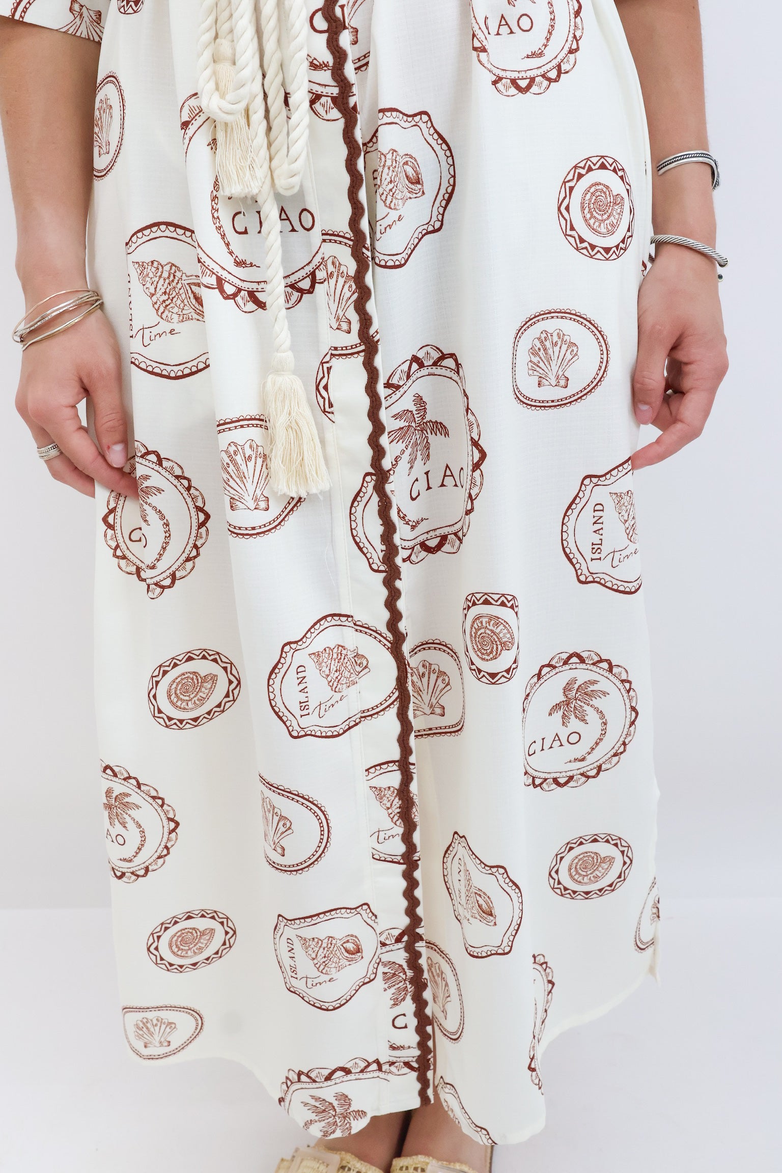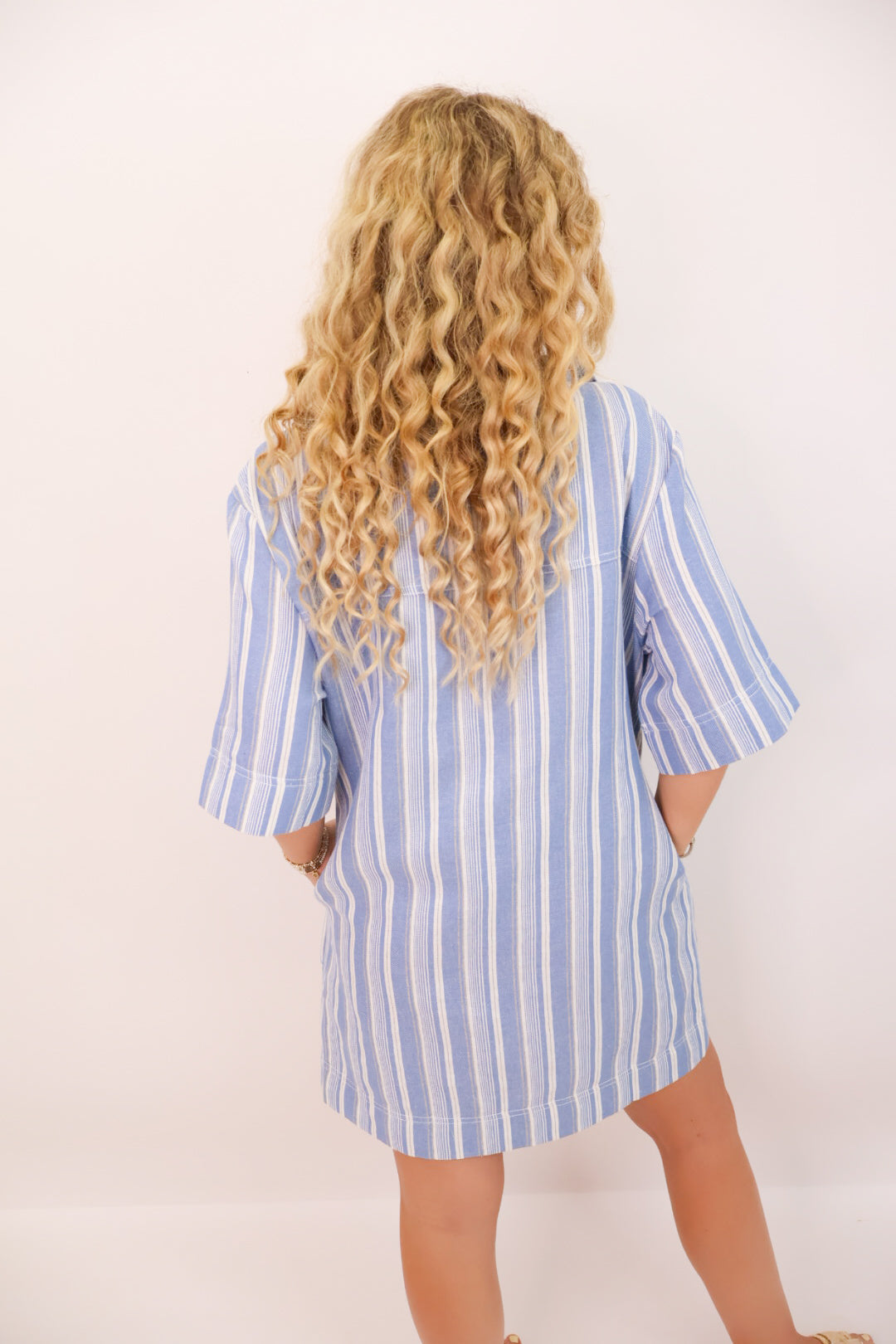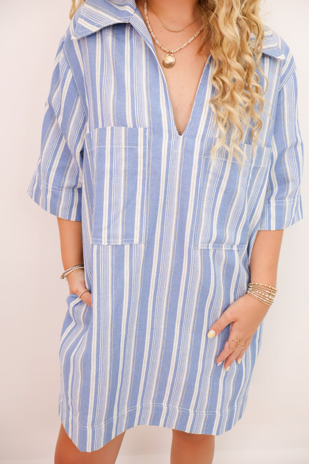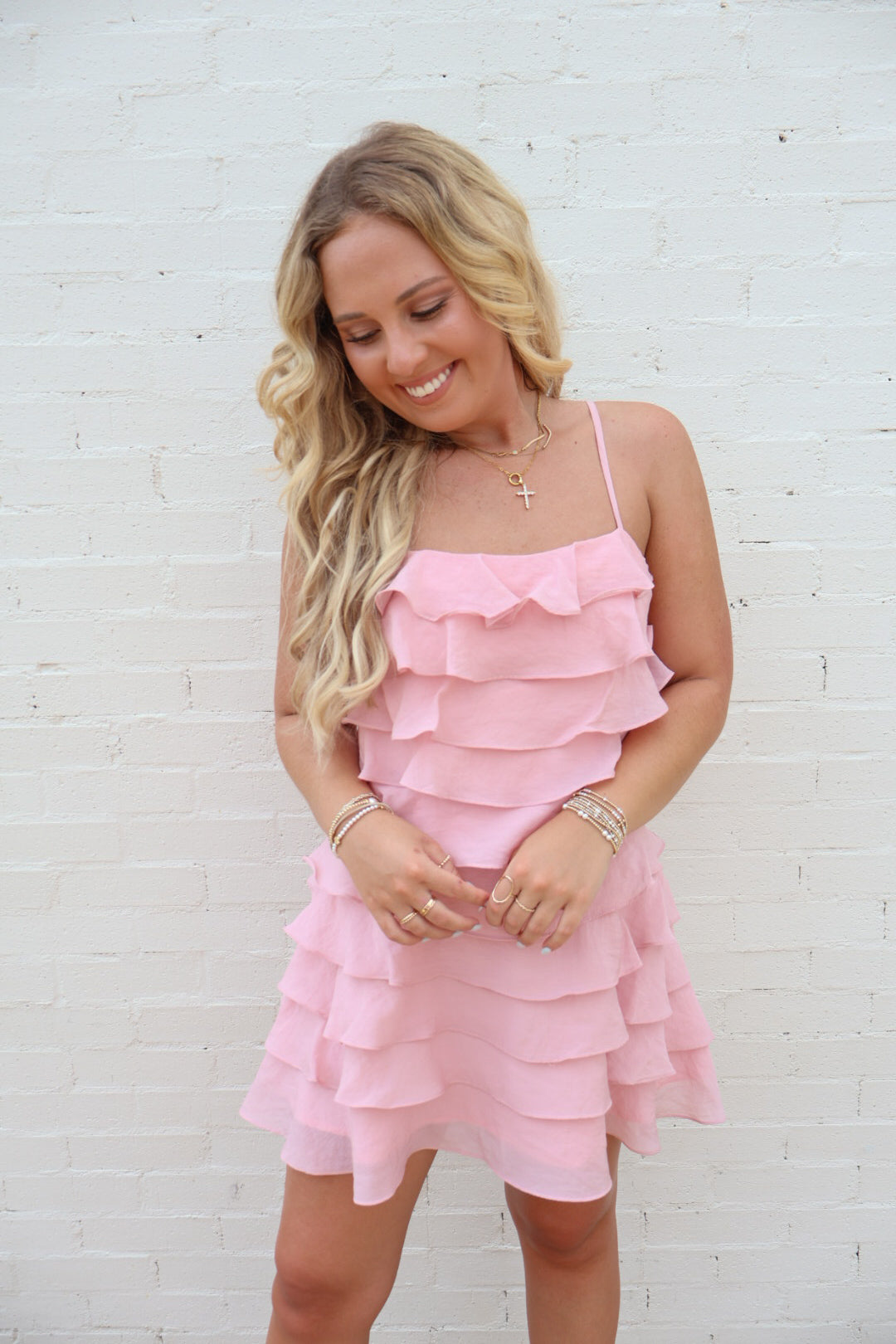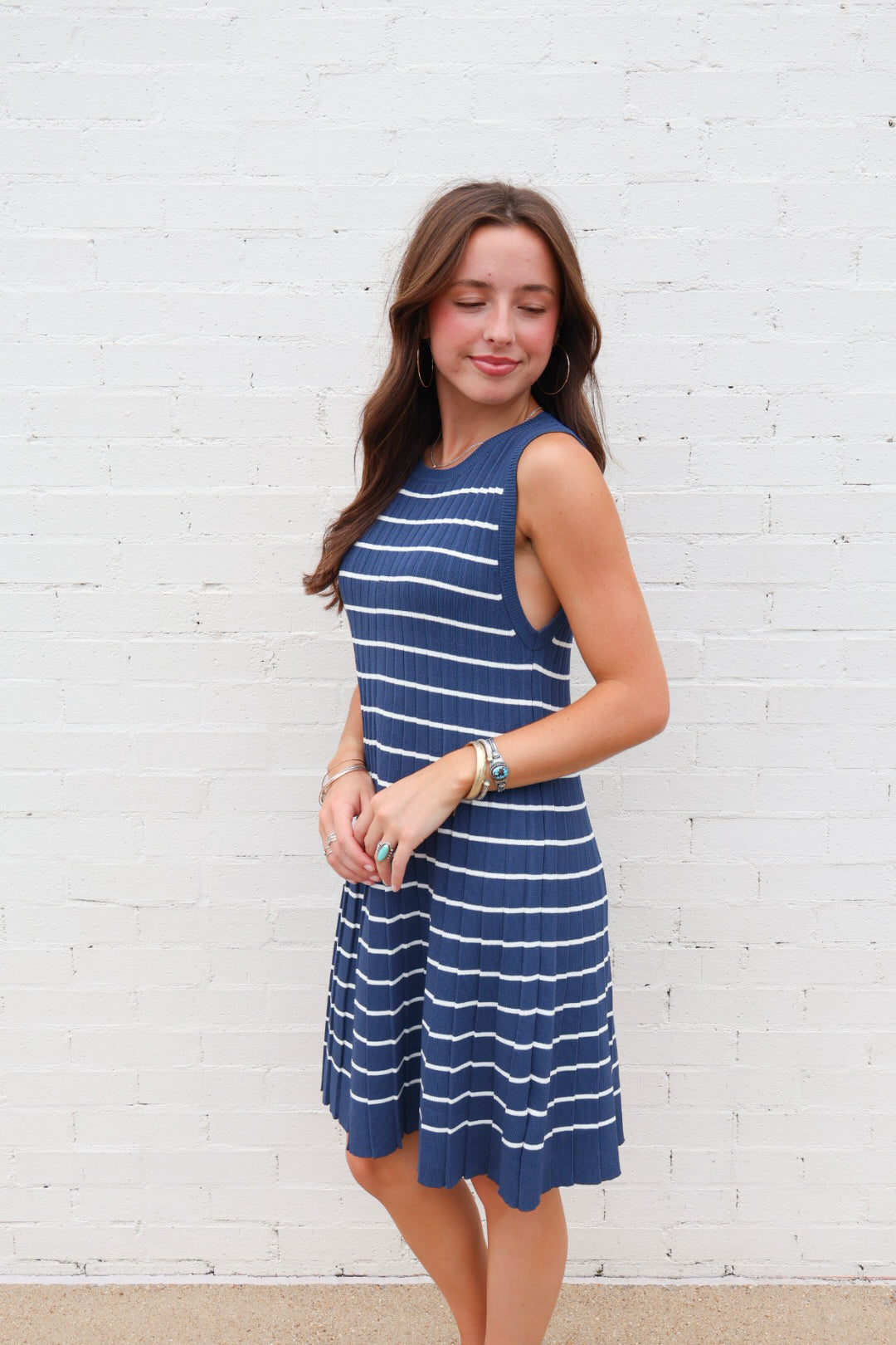 Green & Pink Floral Stripe Shoulder Tie Dress