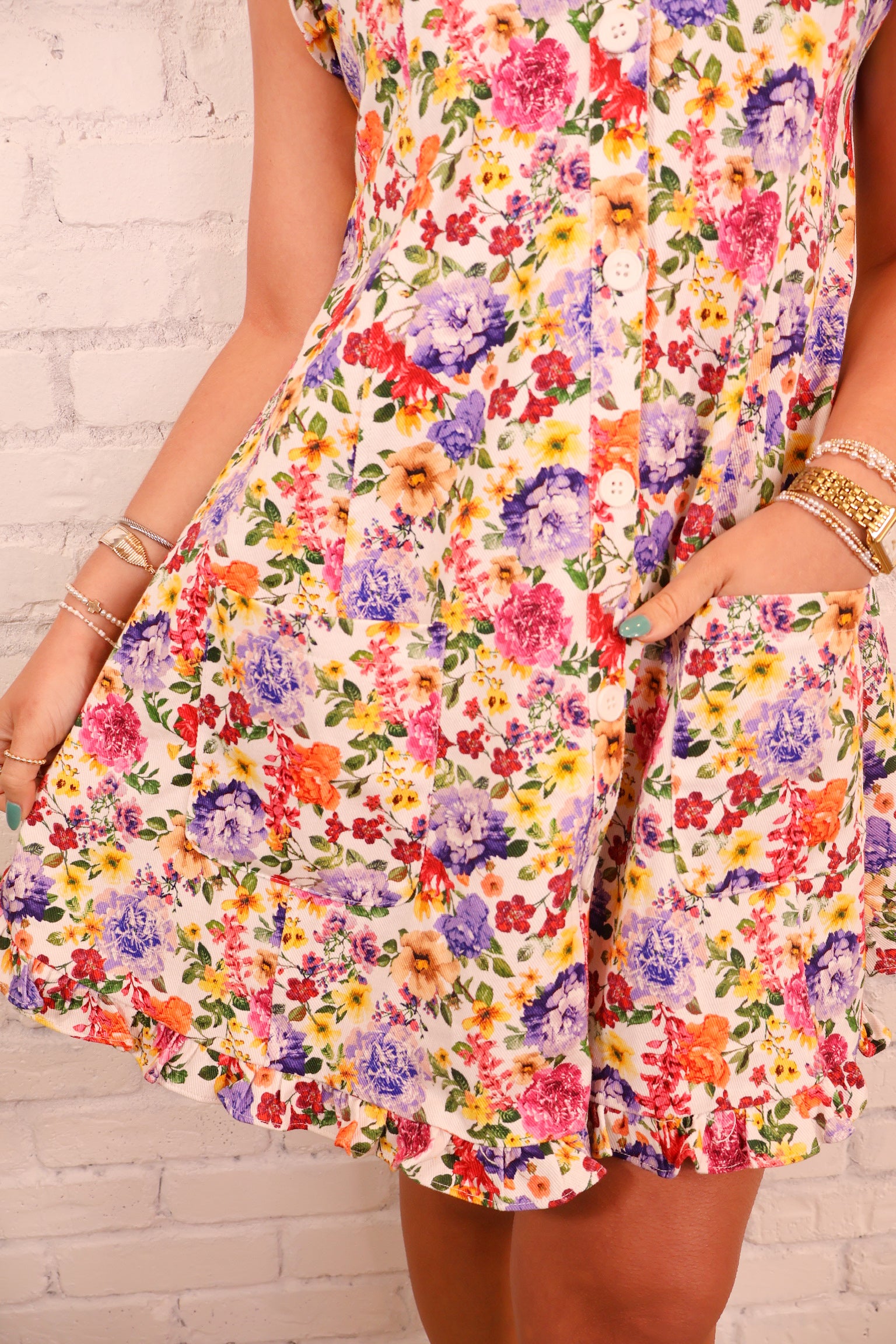 Bright Floral Ruffle Hem Mini Dress