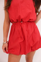Whether you're heading to the stadium or just vibing at a tailgate, this sporty-chic nylon set brings the energy! Designed in a rich crimson hue, the top features a relaxed fit with gathered neckline and adjustable toggle at the waist so you can cinch it to your liking. The matching bubble skirt include an elastic waistband and coordinating toggle detail for the perfect combo of comfort and cuteness.