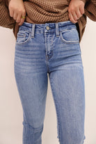 Your search for the perfect everyday jeans ends here! The Vervet Bella Denim is a best-seller for a reason—featuring a high-rise fit that flatters your waist and a cropped length that’s effortlessly stylish. The distressed hem adds just the right amount of edge, making these jeans a must-have for any wardrobe. Crafted from soft, comfortable denim with the perfect amount of stretch, they’re designed for all-day wear without sacrificing style.