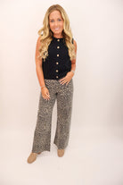 Make a bold statement this season with our Wide Leg Leopard Jeans – equal parts comfy and chic. These printed pants bring a touch of edge to your fall rotation with their neutral leopard pattern and flattering wide-leg silhouette. The structured yet soft denim-blend fabric holds its shape beautifully, while the high-rise waist keeps the look polished. Style them with a fitted black top for a sleek vibe, or go bold with a colorful sweater for a playful twist.