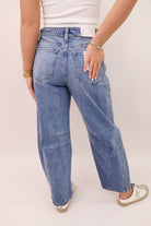 Meet your new favorite jeans—the Vervet Medium Wash Barrel Denim! Designed with a relaxed barrel-leg fit, these jeans give you that effortless, on-trend look with all-day comfort. The medium wash makes them a perfect staple for any season, pairing seamlessly with everything from casual tees to dressy blouses. Crafted from soft yet structured denim, they hold their shape while allowing easy movement—because style should never compromise comfort.