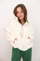 A cozy classic with a modern twist — this sherpa pullover brings all the warmth with standout details. Designed with a half-zip neckline, oversized fit, and contrast trim along the sleeves and zipper, it’s the layer you’ll be reaching for all season long. Whether you throw it on for carpool mornings, weekend errands, or cozy nights by the fire, it’s the definition of effortless comfort.