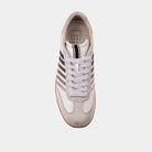 Shu Shop Stevie sneakers, metallic stripe sneakers, retro gum sole sneakers, casual everyday sneakers, women’s faux leather sneakers, women's trendy neutral sneakers