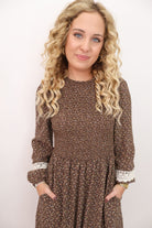 Romantic, timeless, and made for fall moments — our Brown Floral Lace Trim Maxi Dress is a piece you’ll reach for year after year! The flowy, full-length silhouette features soft cream lace detailing along the neckline and sleeves, creating the perfect contrast against the rich brown floral print. It’s that ideal blend of boho elegance and everyday wearability.