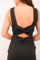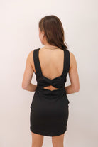 Sultry meets sophistication in this black fitted mini dress, designed to turn heads! Made from soft, stretchy fabric that hugs your curves in all the right places, this dress offers both comfort and a flattering fit. The standout detail? A twisted open back that adds a bold, unexpected touch. Whether you’re heading to a night out, cocktail party, or special event, this dress is the perfect balance of sleek and statement-making.