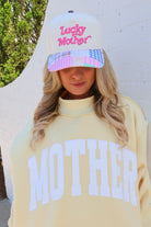 This one is FUN. The “Lucky Mother” embroidery paired with the colorful patchwork brim gives this hat that standout, boutique feel.