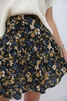 Black Fall Floral Mini Skirt