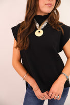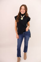 Black mock neck sweater top, sleeveless black sweater, elevated basic black fall top, easy black sweater top, easy fall top