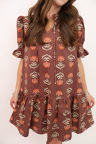 Meet your new fall favorite — the Brown Floral Dress, where rich autumn hues meet a timeless, easygoing silhouette. Designed in a deep chestnut base with soft orange and sage floral print, this dress strikes the perfect balance between cozy and chic. The puff sleeves and tiered skirt give it movement and charm, while the relaxed fit keeps it comfortable for all-day wear.