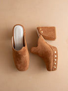 camel clogs, women’s studded clogs, retro block heel shoes, platform clogs, suede clogs, trendy fall shoes for women