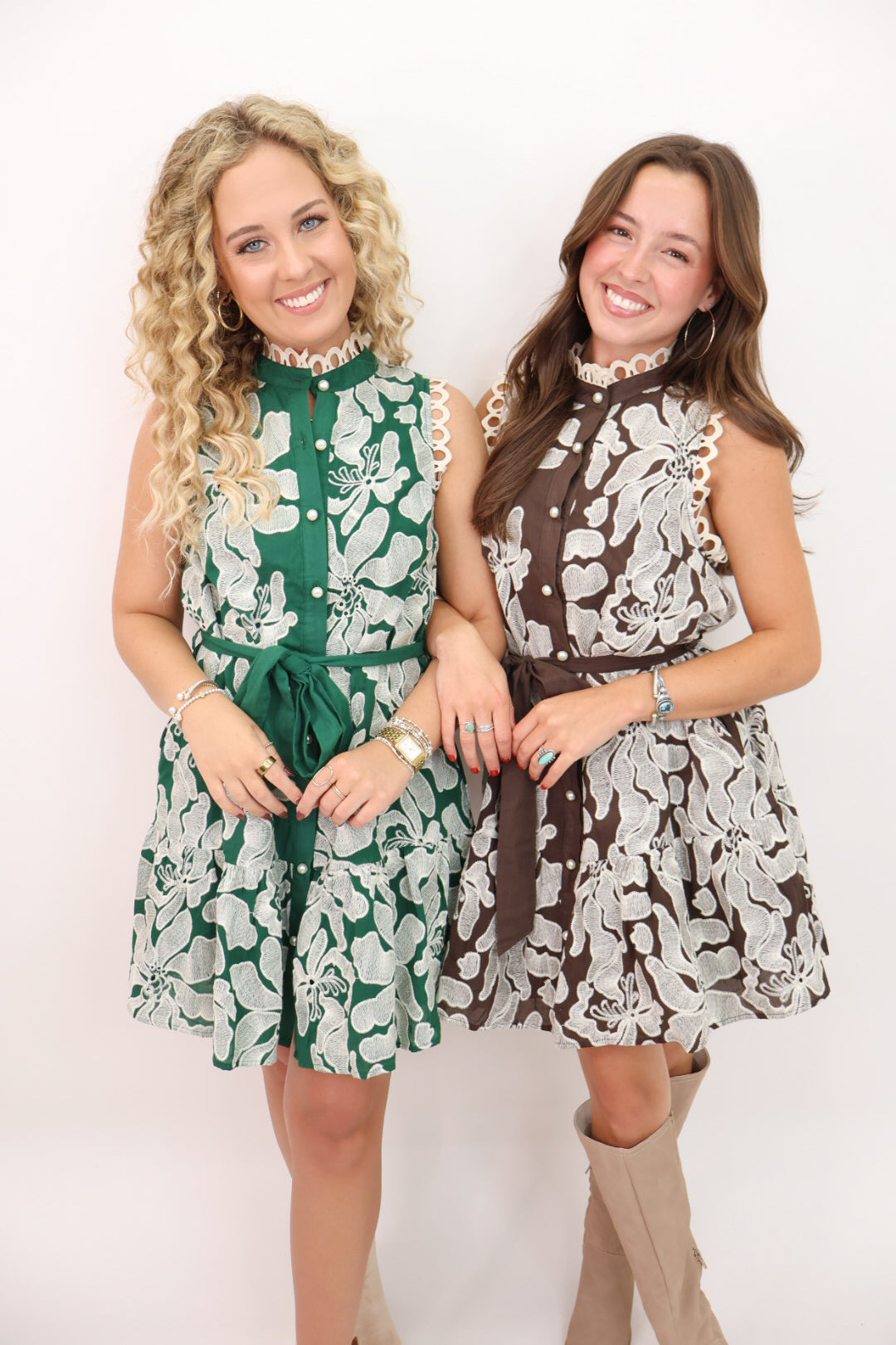 Chic, detailed, and effortlessly wearable — this embroidered midi dress is everything we love about fall style. Featuring delicate allover contrasting embroidery, this classic sleeveless dress is the perfect choice for upcoming weddings, showers, and more. The flowy silhouette is anchored by an adjustable waist tie making it an easy fit. A touch of pearl beading adds an elevated finish that makes this one extra special!
