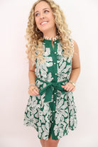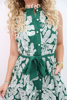 Chic, detailed, and effortlessly wearable — this embroidered midi dress is everything we love about fall style. Featuring delicate allover contrasting embroidery, this classic sleeveless dress is the perfect choice for upcoming weddings, showers, and more. The flowy silhouette is anchored by an adjustable waist tie making it an easy fit. A touch of pearl beading adds an elevated finish that makes this one extra special!