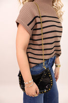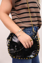 The Studded Faux Leather Shoulder Bag - Black