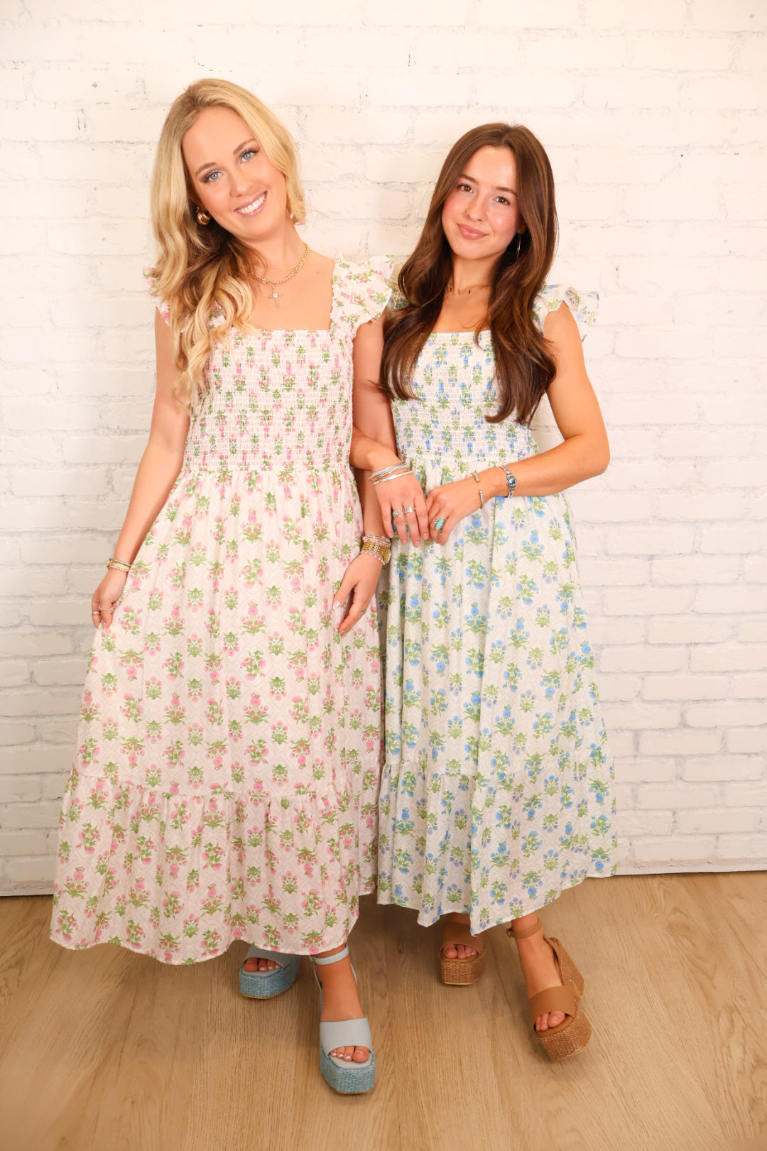 Romantic, timeless, and effortlessly flattering — the Block Floral Smocked Maxi Dress is a piece you’ll wear on repeat all season long. Featuring a soft floral print and a fully smocked bodice, this dress hugs comfortably through the top before flowing into a breezy tiered maxi skirt.