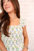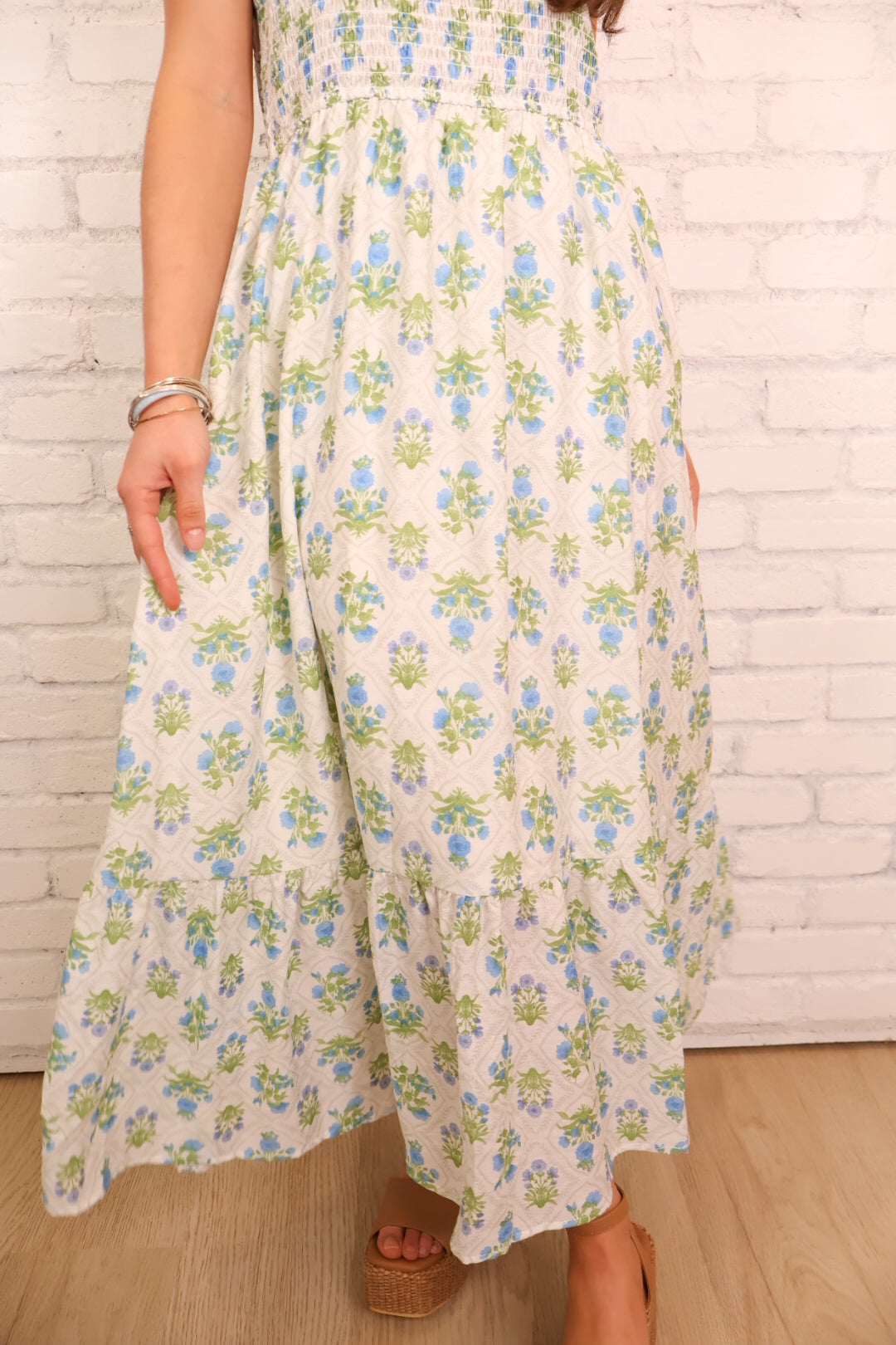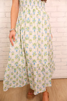 Block Floral Smocked Maxi Dress - Blue