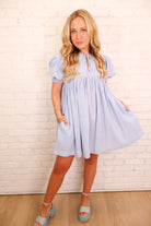Gingham Babydoll Dress - Blue