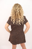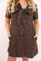 leopard print mini dress, fall leopard dress, brown animal print dress, button down fall dress, easy fall dress, leopard denim dress