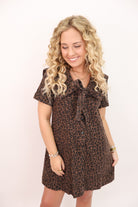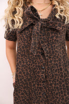 Wild meets chic in the Leopard Denim Dress, a timeless fall favorite with a playful twist! This soft woven dress features an allover chocolate brown leopard print that’s subtle yet striking, perfect for adding a little personality to your fall lineup. The short puff sleeves and tie-neck detail give it a feminine finish, while the relaxed fit keeps it easy and flattering on every body type.