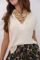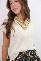 ivory knit short sleeve top, lightweight sweater top, breathable fall knit top, fall essential top, casual lightweight sweater top