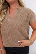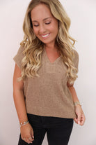 Tab knit short sleeve top, lightweight sweater top, breathable fall knit top, fall essential top, casual lightweight sweater top