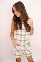 This plaid romper is fall made easy! With its boxy silhouette, button front design, and relaxed fit, it gives all the comfort of your favorite set with the put-together look of a one-and-done outfit. The plaid print keeps it seasonal while the roomy cut makes it a versatile piece for layering.