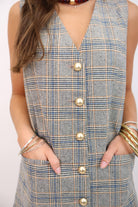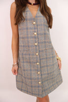 plaid mini dress, button front dress, fall plaid dress, sleeveless plaid dress, chic fall outfit, versatile plaid dress